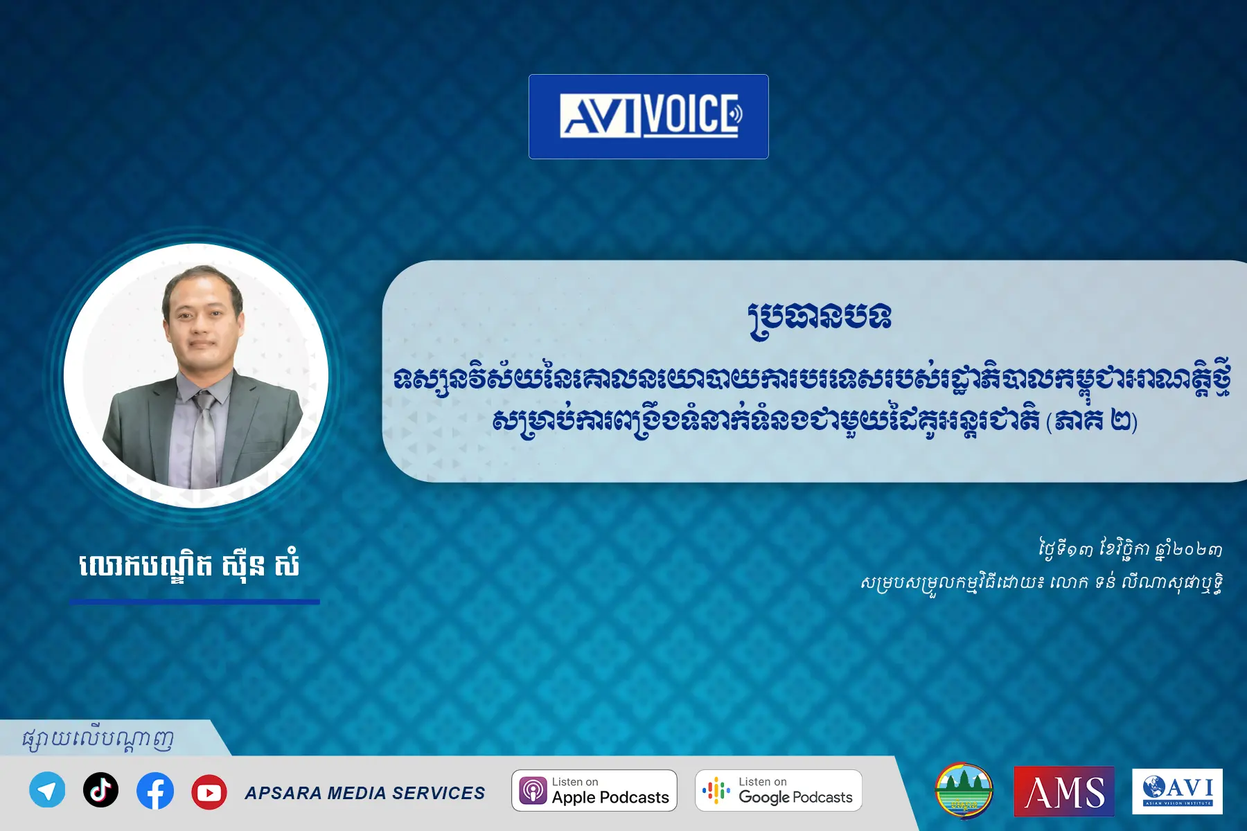 AVI Voice Ep138 :ទស្សនវិស័យនៃគោលនយោបាយការបរទេសរបស់រដ្ឋាភិបាលកម្ពុជាអាណត្តិថ្មី សម្រាប់ការពង្រឹងទំនាក់ទំនងជាមួយដៃគូអន្តរជាតិ (ភាគ ១)