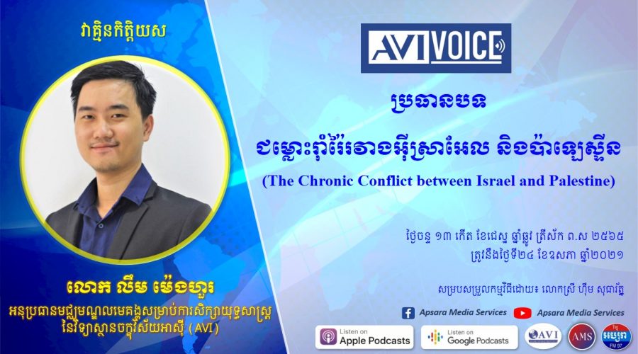 ជាប្រវត្តិសាស្រ្ត ជម្លោះរវាងប្រទេសអ៊ីស្រាអែល និងប៉ាឡេស្ទីនបានកើតឡើងចាប់តាំងពីពេលដែលអ៊ីស្រាអែលបានបង្កើតឡើងជារដ្ឋមួយ នៅឆ្នាំ១៩៤៨ មកម្លេះ។ កាលពីពេលថ្មីៗនេះ ជម្លោះរវាងប្រទេសអ៊ីស្រាអែល និងប៉ាឡេស្ទីន ក៏បានចាប់ផ្ដើមឡើងសារជាថ្មីម្តងទៀត ក្រោយពីមានការវាយប្រហារដោយគ្រាប់រ៉ុកកែត ពីក្រុមឧទ្ទាមហាម៉ាសរបស់ប៉ាឡេស្ទីនទៅលើអ៊ីស្រាអែល តាមរយៈការបាញ់បោះគ្រាប់រ៉ុកកែតដាក់ឲ្យគ្នាទៅវិញទៅមក ដែលបណ្ដាលឲ្យមាននូវការបាក់អាគារ និងបានធ្វើឲ្យបាត់បង់នូវជីវិតប្រជាជនស្លូតត្រង់ជាង ២០០នាក់ ដែលក្នុងនោះក៏មានកុមារ និងស្រ្តីដែរ។ នៅក្នុងកិច្ចសម្ភាសន៍នេះ លោក លឹម ម៉េងហួរ បានលើកឡើងថា ជម្លោះប៉ាឡេស្ទីន និងអ៊ីស្រាអែល មិនត្រឹមតែជាជម្លោះរវាងភាគីទាំងពីរនោះទេ ប៉ុន្តែក៏មានពាក់ព័ន្ធជាមួយបណ្ដាប្រទេសអារ៉ាប់ផ្សេងៗដែលរស់នៅជុំវិញអុីស្រាអ៊ែល និងមហាអំណាចផ្សេងៗទៀត។ លោកយល់ឃើញថា ស្ថានភាព ក៏ដូចជាភាពតានតឹងរបស់ភាគីទាំងពីរ មិនអាចដោះស្រាយបានដោយងាយក្នុងពេលឆាប់ៗនេះទេ។ រាល់ចំណាត់ការ ឬកិច្ចព្រមព្រៀងណាមួយ ត្រូវតែធ្វើឡើងដោយមានការឯកភាពពីភាគីទាំងពីរ គឺភាគីអ៊ីស្រាអែល និងប៉ាឡេស្ទីន ហើយត្រូវតែមានការចូលរួមពីប្រទេសផ្សេងៗនៅជុំវិញអុីស្រាអ៊ែល ក៏ដូចជាមហាអំណាចនានា ជាពិសេសគឺសហរដ្ឋអាមេរិក ដែលជាសម្ព័ន្ធមិត្តរបស់អុីស្រាអ៊ែលស្រាប់តែម្ដង។