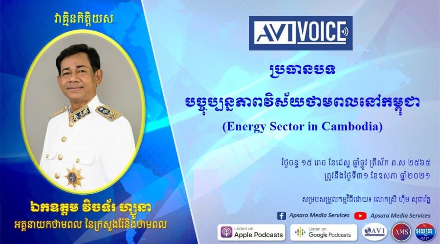 ព្រះរាជាណាចក្រកម្ពុជា ត្រូវបានសហគមន៍អន្តរជាតិទទួលស្គាល់ថា ជាប្រទេសមួយនៅក្នុងតំបន់អាស៊ាន ដែលមានសេដ្ឋកិច្ចរីកចម្រើនខ្លាំងគួរឲ្យកត់សម្គាល់។ នៅមុនវិបត្តិនៃជំងឺរាតត្បាតកូវីដ-១៩ សេដ្ឋកិច្ចរបស់កម្ពុជាមានកំណើនក្នុងរង្វង់ ៧% ក្នុងមួយឆ្នាំ ហើយវិស័យថាមពល ក៏ជាវិស័យមួយដ៏សំខាន់ដែលបានចូលរួមចំណែកនៅក្នុងកំណើននេះផងដែរ។ អគ្គិសនីបានផ្គត់ផ្គង់ទៅដល់អតិថិជនតាមរយៈបណ្តាញអគ្គិសនីថ្នាក់ជាតិសម្រាប់ទ្រទ្រង់នូវតម្រូវការអាជីវកម្មក្នុងស្រុកប្រចាំឆ្នាំ ដែលមានកំណើនរវាង ១៤,៧៨% និង ២៧,៧៩% នៅចន្លោះឆ្នាំ២០១៤ ដល់ឆ្នាំ ២០១៩។ បណ្តាញអគ្គិសនីជាតិរបស់កម្ពុជា ត្រូវបានគេមើលឃើញថា មានលក្ខណៈដែលអាចទុកចិត្តបាននិងមានតំលៃសមរម្យ ព្រមទាំងអាចធានាបាននូវលទ្ធភាពក្នុងការផ្គត់ផ្គង់បានគ្រប់គ្រាន់ទៅដល់អតិថិជនទៅតាមពេលវេលាដែលត្រូវការ។ សូមប្រិយមិត្តអ្នកស្តាប់មេត្តាសណា្តប់នូវកិច្ចសម្ភាសន៍ពាក់ព័ន្ធនឹងវិស័យថាមពលនៅកម្ពុជា ដូចតទៅនេះ។