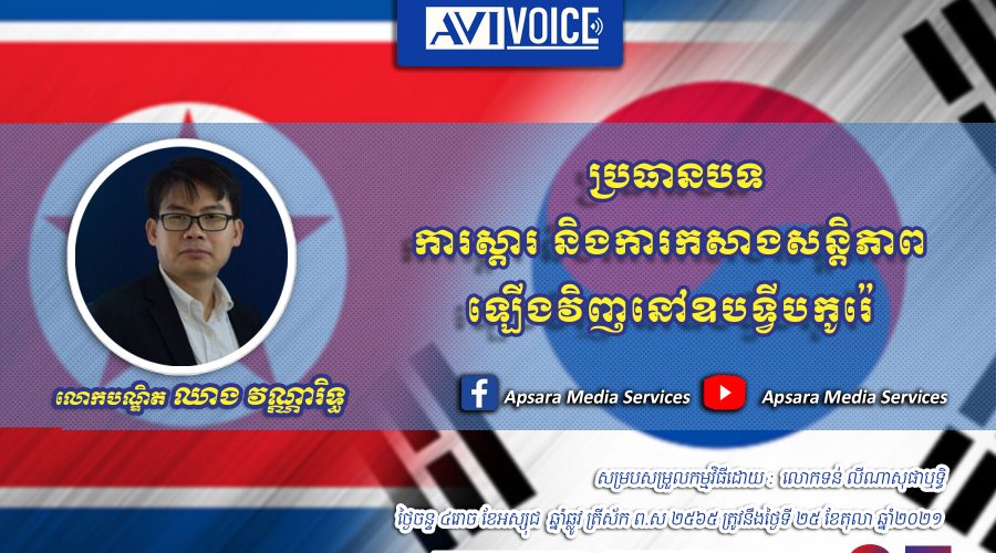បញ្ហានៅឧបទ្វីបកូរ៉េ គឺជាបញ្ហាដ៏ស្មុគស្មាញមួយដែលអូសបន្លាយជាច្រើនទសវត្សរ៍រហូតដល់បច្ចុប្បន្ន។ ហើយដំណើរការឈានទៅរកការចរចា និងការពិភាក្សារវាងកូរ៉េទាំងពីរ និងរវាងកូរ៉េខាងជើងនិងប្រទេសដែលជាភាគីពាក់ព័ន្ធសំខាន់ៗផ្សេងទៀតដើម្បីស្វែងរកដំណោះស្រាយនៅឧបទ្វីបកូរ៉េ ក៏ជាបញ្ហាមួយដែលធ្វើឲ្យពិភពលោកមានភាពស្មុគស្មាញ និងពិបាកនឹងដោះស្រាយផងដែរ។ ក្នុងកិច្ចសម្ភាហ៍នេះ លោកបណ្ឌិត ឈាង វណ្ណារិទ្ធ បានពន្យល់អំពីយន្តការ និងគោលការណ៏សំខាន់ៗដែលជាមូលដ្ឋានគ្រិះសម្រាប់ការផ្សះផ្សាសន្តិភាពនៅឧបទ្វីបកូរ៉េ និងលើកឡើងអំពីបទពិសោធន៍មេរៀនទាក់ទងនឹងគោលនយោបាយឈ្នះឈ្នះរបស់កម្ពុជាក្នុងការកសាងសន្តិភាពនៅក្រោយសង្រ្គាម។