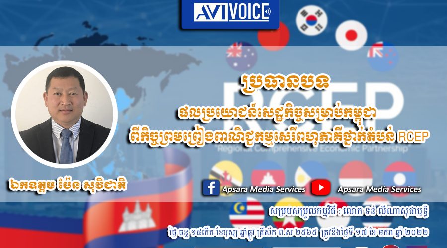 កិច្ចព្រមព្រៀងពាណិជ្ជកម្មសេរីភាពជាដៃគូសេដ្ឋកិច្ចគ្រប់ជ្រុងជ្រោយថ្នាក់តំបន់ (RCEP) ទើបតែចូលជាធរមានកាលពីថ្ងៃទី០១ ខែមករា ឆ្នាំ២០២២។ កិច្ចព្រមព្រៀងនេះគឺ ជាកិច្ចព្រមព្រៀងពាណិជ្ជកម្មសេរីដ៏ធំបំផុតទាំងក្នុងតំបន់ និងពិភពលោក ដែលកម្ពុជាក៏ជាប្រទេសសមាជិកនៃកិច្ចព្រមព្រៀងនេះផងដែរ។ នេះគឺជាកាលានុវត្តភាពដ៏ធំមួយដែលកម្ពុជាអាចស្រូបយកនូវផលប្រយោជន៍សេដ្ឋកិច្ច និងពាណិជ្ជកម្មពីកិច្ចព្រមព្រៀងដ៏ធំមួយនេះ។ នៅក្នុងកិច្ចសម្ភាសន៍នេះ ឯកឧត្ដម ប៉ែន សុវិជាតិ បានបកស្រាយអំពីដំណើរដើមទងនៃកិច្ចព្រមព្រៀង RCEP និងផលប្រយោជន៍ដែលកម្ពុជាអាចនឹងទទួលបានពីកិច្ចព្រមព្រៀងនេះ។