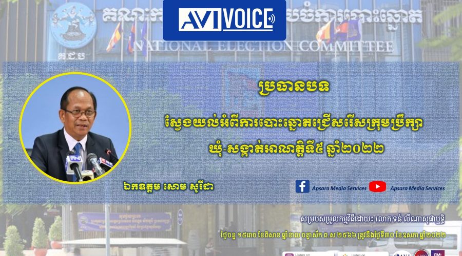 ខ្ញុំបានបញ្ជាក់ជូនហើយថា ការបោះឆ្នោតជ្រើសរើសក្រុមប្រឹក្សាឃុំ-សង្កាត់នេះ គឺជាការអនុវត្តតាមស្មារតីរដ្ឋធម្មនុញ្ញ មាត្រា៥១មួយ ហើយក៏ជារយៈពេលប្រាំឆ្នាំម្ដង ដែលប្រជាពលរដ្ឋប្រើប្រាស់សិទ្ធិបោះឆ្នោតរបស់ខ្លួន ដូចបានចែងនៅក្នុងមាត្រា៣៤នៃរដ្ឋធម្មនុញ្ញ ដើម្បីជ្រើសរើសតំណាងដោយស្របច្បាប់ អញ្ចឹងទេការបោះឆ្នោតនេះ គឺនៅថ្ងៃទី៥ ខែមិថុនា ឆ្នាំ២០២២ឆ្នាំមុននេះ ខ្ញុំសូមអំពាវនាវដល់បងប្អូនប្រជាពលរដ្ឋដែលមានឈ្មោះនៅក្នុងបញ្ជីបោះឆ្នោត សូមអញ្ជើញទៅបោះឆ្នោតឱ្យបានគ្រប់គ្រប់គ្នា។ ដើម្បីបោះឆ្នោតបានបងប្អូនត្រូវមានឈ្មោះនៅក្នុងបញ្ជីបោះឆ្នោតនិងមានអត្តសញ្ញាណប័ណ្ណសញ្ជាតិខ្មែរ ហើយក្នុងករណីដែលបងប្អូនប្រជាពលរដ្ឋមិនទាន់មានអត្តសញ្ញាណប័ណ្ណសញ្ជាតិខ្មែររបស់ខ្លួនឬអត្តសញ្ញាណប័ណ្ណសញ្ជាតិខ្មែររបស់ខ្លួនអស់សុពលភាពឬអត្តសញ្ញាណប័ណ្ណសញ្ជាតិខ្មែររបស់ខ្លួនខូចឬបាត់ សូមបងប្អូនរួសរាន់ទៅគណៈកម្មការឃុំ-សង្កាត់រៀបចំការបោះឆ្នោតដើម្បីបំពេញបែបបទសុំឯកសារបញ្ជាក់អត្តសញ្ញាណបម្រើឱ្យការបោះឆ្នោត ដែលការស្នើសុំនិងការចេញឯកសារបញ្ជាក់អត្តសញ្ញាណបម្រើឱ្យការបោះឆ្នោតនេះមានរយៈពេល៣០ថ្ងៃ ចាប់ផ្តើមពីថ្ងៃទី៥ ខែឧសភារហូតដល់ថ្ងៃទី៣ ខែមិថុនា ឆ្នាំ២០២២ អញ្ចឹងរយៈពេលនេះយើងសល់ ដែលយើងគិតមកដល់ពេលនេះ គឺពេលវេលានៅសល់តិច យ៉ាងណាក៏ដោយសូមបងប្អូនប្រជាពលរដ្ឋដែលស្ថិតនៅក្នុងស្ថានភាពពុំមានអត្តសញ្ញាណប័ណ្ណដូចដែលខ្ញុំបានបញ្ជាក់ខាងដើមនេះ សូមមេត្តារួសរាន់ហើយនៅពេលដែលបងប្អូនទទួលបានឯកសារបញ្ជាក់ អត្តសញ្ញាណបម្រើឱ្យការបោះឆ្នោតដែលគណៈកម្មការឃុំសង្កាត់រៀបចំការបោះឆ្នោតរៀបចំជូនហើយសូមរួសរាន់ទៅជួបមេឃុំ-ចៅសង្កាត់ ដើម្បីចុះហត្ថលេខាផ្ដល់សុពលភាពនៅការប្រើប្រាស់ឯកសារបញ្ជាក់អត្តសញ្ញាណបម្រើការបោះឆ្នោតដើម្បីបោះឆ្នោតនាពេលខាងមុខ៕