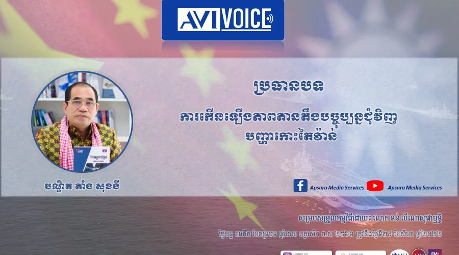 ដំណើរទស្សនកិច្ចរបស់មន្រ្តីជាន់ខ្ពស់ស.រ.អ.គឺលោកស្រី Nancy Pelosi បានបង្កឱ្យមានកម្ដៅកាន់តែខ្លាំងបន្ថែមទៀតជុំវិញបញ្ហាកោះតៃវ៉ាន់ ដែលបច្ចុប្បន្នរដ្ឋាភិបាលក្រុងប៉េកាំងកំពុងតែពង្រឹងសកម្មភាពយោធានៅជុំវិញដែនទឹកកោះតៃវ៉ាន់។ សកម្មភាពនេះបានបង្កឱ្យមានភាពតានតឹងកាន់តែខ្លាំង និងបង្កជាក្ដីព្រួយបារម្មណ៍ដល់សន្តិសុខ និងស្ថិរភាពតំបន់ទាំងមូល។ ក្នុងកិច្ចសម្ភាសន៍នេះ លោកបណ្ឌិត តាំង សុខងី បានរៀបរាប់ពីស្ថានការណ៍តានតឹងបច្ចុប្បន្ន និងផលប៉ះពាល់ដល់ទំនាក់ទំនងអនាគតរបស់ប្រទេសទាំងពីរ ក៏ដូចជាផលបច្ច័យដល់សន្តិភាពក្នុងតំបន់ផងដែរ។