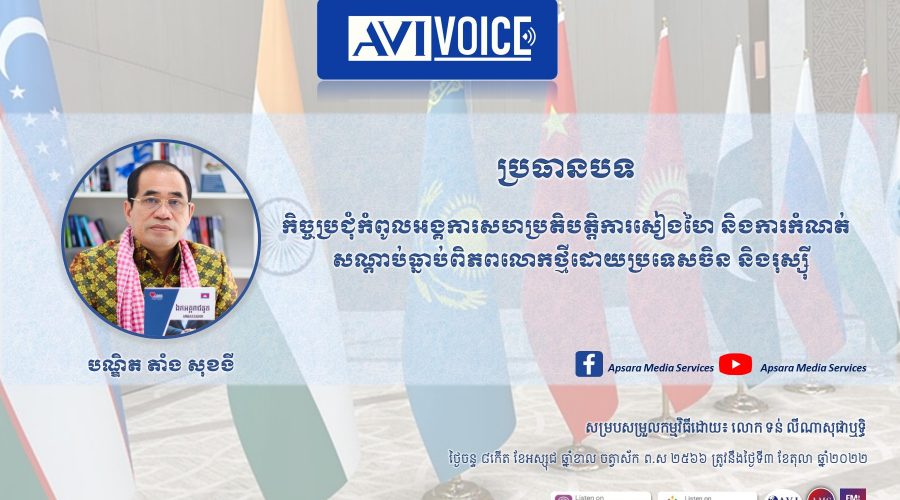 សំណួរទី១៖ កាលពីថ្ងៃទី១៥-១៦ ខែកញ្ញា នៅប្រទេសអ៊ូបេគីស្ថាន (Uzbekistan) បានធ្វើជាម្ចាស់ផ្ទះនៃកិច្ចប្រជុំកំពូលនៃអង្គការសហប្រតិបត្តិការសៀងហៃ (Shanghai Cooperation Organizations Summit)។ នៅក្នុងកិច្ចប្រជុំកំពូលនៃអង្គការសហប្រតិបត្តិការសៀងហៃនេះ យើងឃើញថាប្រទេសចិន និងប្រទេសរស្ស៊ីបានលើកឡើងនូវការរចនាឡើងវិញនូវសណ្តាប់ធ្នាប់ពិភពលោកថ្មី។ ជាដំបូង ថាតើអ្វីទៅជាសណ្តាប់ធ្នាប់ពិភពលោក ឬដែលហៅថាWorld Order? ហើយហេតុអ្វីបានជាប្រទេសចិន និងប្រទេសរស្ស៊ីកំពុងស្វែងរកនូវការកំណត់ឡើងវិញនូវសណ្តាប់ធ្នាប់ពិភពលោកថ្មីដូចនេះ?