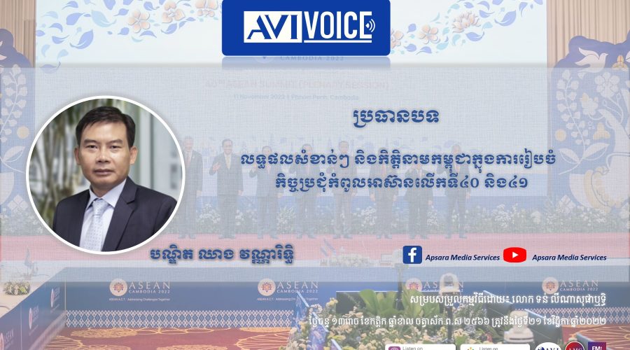 កិច្ចប្រជុំកំពូលអាស៊ានលើកទី៤០ ទី៤១ និងកិច្ចប្រជុំកំពូលពាក់ព័ន្ធ ជាពិសេសកិច្ចប្រជុំកំពូលអាស៊ីបូព៌ា ឬ East Asia Summit គឺបានជោគជ័យ ផ្លែផ្កាល្អប្រសើរ លើសពីការរំពឹងទុក ពីព្រោះថាយើងឃើញថាបញ្ហានៅក្នុងតំបន់ និងអន្តរជាតិ គឺកាន់តែស្មុគស្មាញ ហើយពិបាកនឹងរកដំណោះស្រាយ ឬគោលជំហររួម ក៏ប៉ុន្តែកម្ពុជាយើងដែលជាប្រធានអាស៊ានហ្នឹង គឺសម្របសម្រួលហើយបានចេញនូវឯកសារសំខាន់ៗបាន១០១ឯកសារ ហើយមានប្រទេស២៩ចូលរួមនៅក្នុងកិច្ចប្រជុំសប្ដាហ៍មុននេះ។ នេះគឺជាជោគជ័យមួយធំ ពីព្រោះថាស្ថានការណ៍បច្ចុប្បន្ន គឺវាមិនស្រួលទេ នៅក្នុងការចាត់ចែងរៀបចំនូវការប្រជុំផង ហើយនូវការរកភាពឯកច្ឆន្ទ ឬក៏ចំណុចរួមដើម្បីអាចចេញនូវឯកសាររួម។ ទីពីរ៖ ទាក់ទងទៅនឹងខ្លឹមសារនេះក៏មានសារៈសំខាន់ ហើយក៏ជាជោគជ័យរបស់កម្ពុជាដែរ គឺយើងបានខិតខំប្រឹងប្រែងប្រមូលនូវកម្លាំងនយោបាយនៅក្នុងតំបន់ និងអន្តរជាតិដើម្បីស្វែងរកដំណោះស្រាយរួម ពីព្រោះថាបញ្ហាតំបន់ និងអន្តរជាតិនេះ វាទាមទារឱ្យមានកិច្ចសហប្រតិបត្តិការអន្តរជាតិ ភាពជាដៃគូអន្តរជាតិ ហើយនិងការប្រមូលទាំងធនធានបញ្ញា ស្មារតី ហើយនិងធនធានហិរញ្ញវត្ថុ ដើម្បីចូលរួមដោះស្រាយ។ នេះគឺជាកិច្ចការមួយសំខាន់ដែលកម្ពុជាបានជំរុញក្នុងការដោះស្រាយបញ្ហាសំខាន់ៗនៅក្នុងតំបន់ រួមទាំងភាពបម្រែបម្រួលអាកាសធាតុផងដែរ ការជំរុញតួនាទីរបស់ស្ត្រីនៅក្នុងសង្គម ជាពិសេសក្នុងការស្តារឡើងវិញនូវសេដ្ឋកិច្ចសង្គមនៅក្នុងតំបន់នេះ ហើយកម្ពុជាក៏បានរៀបចំកិច្ចប្រជុំលើកទីពីរ «ASEAN Global Dialogue ឬ កិច្ចពិភាក្សាអាស៊ានសាកល» ពី១០ឆ្នាំទៅនេះ អាស៊ានយើងក៏បានរៀបចំកិច្ចប្រជុំហ្នឹងដែរ នេះជាលើកទីពីរ។ កិច្ចប្រជុំនេះគឺមានសារៈសំខាន់ណាស់ ដើម្បីផ្សារភ្ជាប់អាស៊ានជាមួយនឹងតួអង្គអន្តរជាតិផ្សេងៗ រួមទាំងអង្គការសហប្រជាជាតិ(UN) រួមទាំងធនាគារពិភពលោក (WB) ធនាគារអភិវឌ្ឍន៍អាស៊ី(ADB) អង្គការវេទិកាសេដ្ឋកិច្ចសកលលោក (WTO) ហើយនិងអង្គការសំខាន់ៗមួយចំនួនទៀតនៅក្នុងតំបន់ និងសកលលោកហ្នឹងចូលរួម ដើម្បីប្រមូលនូវគំនិតច្នៃប្រឌិត និងផ្នែកធនធានហ្នឹងតែម្ដង ដើម្បីដោះស្រាយរួមគ្នា ពីព្រោះបញ្ហាតំបន់ និងសកលហ្នឹង អាស៊ានម្នាក់ឯងមិនអាចដោះស្រាយបានទេ។ អ៊ីចឹងវាត្រូវឱ្យមានភាពជាដៃគូជាមួយនឹងភាគីពាក់ព័ន្ធអន្តរជាតិផ្សេងៗ ដើម្បីរួមជាធ្លុងមួយ។ ហើយលើបញ្ហាភូមាយើងក៏ឃើញមានដំណោះស្រាយដែលអាចទទួលយកបានដែរ គឺមានការធ្វើឱ្យមានការមានគម្រោងច្បាស់លាស់ មានផែនការច្បាស់លាស់ មានពេលវេលាច្បាស់លាស់ ដើម្បីអនុវត្តទៅមានប្រសិទ្ធភាពជាងមុន។ ទាក់ទងទៅនឹងចំណុចឯកច្ឆន្ទទាំង៥របស់អាស៊ានហ្នឹង ធ្វើឱ្យវាមានប្រសិទ្ធភាពត្រូវតែមានផែនការច្បាស់លាស់ ហើយនិងពេលវេលាច្បាស់