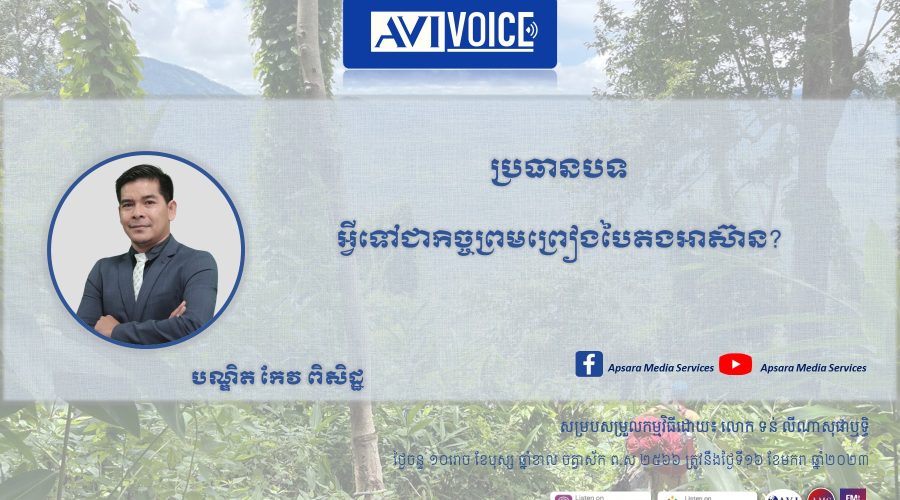 បើនិយាយទាក់ទងជាមួយនឹងកិច្ចព្រមព្រៀងអាស៊ានហ្នឹងតែម្ដង ទិដ្ឋភាពតាមពិត បើយើងពិនិត្យមើលមែនទែន វិសាលភាពធំខ្លាំង ពាក្យថាបៃតងមែនទែនពេលខ្លះយើងជាប្រជាជនទូទៅឬក៏អ្នកស្រាវជ្រាវមិនមែននៅក្នុងវិស័យហ្នឹងតែងតែយល់ថាពាក្យបៃតង គឺសំដៅទៅលើវិស័យព្រៃឈើដែលមានពណ៌បៃតង ក៏ប៉ុន្តែបើទិដ្ឋភាពខាងបរិស្ថានវិញ គេមើលលើសពីហ្នឹងទៅទៀត លើសពីព្រៃឈើ ទាក់ទងនឹងរឿងថាមពល ថាមពលកកើតឡើងវិញ ដែលវាមិនបំពុលទៅខ្យល់ បំណុលទៅស្រទាប់បរិយាកាស ដែលយើងតែងនិយាយអំពីការជជែកទាក់ទងទៅនឹងការប្រែប្រួលអាកាសធាតុ ទាក់ទងជាមួយខ្យល់ ទាក់ទងជាមួយការគ្រប់គ្រងសំរាម ដែលយើងប្រហែលជាធ្លាប់លឺ ទាក់ទងនឹងសេដ្ឋកិច្ចចក្រា ដែលជាសេដ្ឋកិច្ចវិលជុំមួយ ដែលគេព្យាយាមកាត់បន្ថយកាកសំណល់តាមដែលអាចធ្វើត្រូវបាន ហើយវាអាចទាក់ទងនឹងការអភិវឌ្ឍមួយដែលយើងមានការការពារដល់ទឹក ដល់ប្រព័ន្ធអេកូឡូស៊ី ដល់រឿងសមុទ្រ កុំឱ្យមានការបំពុលហ្នឹង។