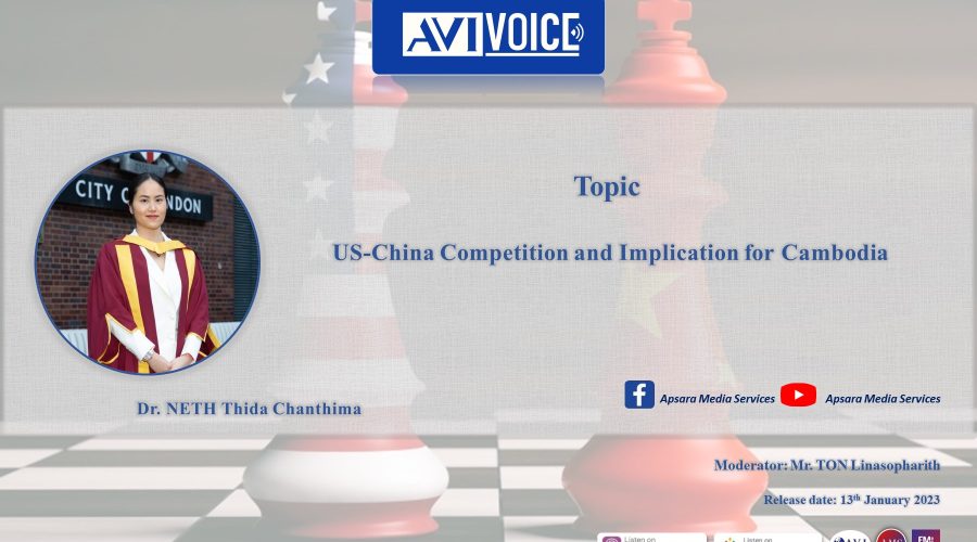 ស្ថានភាពនៃការប្រកួតប្រជែងមហាអំណាចស.រ.អ.និងចិន នៅតែជាប្រធានបទក្ដៅនិងមានភាពស្មុគស្មាញ។ ជាពិសេសវាបានជះឥទ្ធិពលដល់ដល់ការអនុវត្តនូវគោលនយោបាយការបរទេសរបស់បណ្ដាប្រទេសនៅក្នុងតំបន់នានា។ ក្នុងកិច្ចសម្ភាសន៍នេះ បណ្ឌិត NETH Thida Chanthima បានពន្យល់អំពីលក្ខណៈនៃយុទ្ធសាស្រ្ត និងគោលនយោបាយការបរទេសរបស់មហាអំណាចទាំងពីរចំពោះការប្រកួតប្រជែងមួយនេះ និងលើកឡើងអំពីផលប៉ះពាល់ដល់ការអនុវត្តគោលនយោបាយការបរទេសរបស់កម្ពុជាផងដែរ។