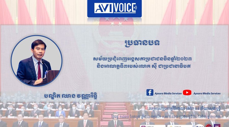 សម័យប្រជុំពេញអង្គសភាប្រជាជនចិនឆ្នាំ២០២៣ ត្រូវបានប្រព្រឹត្តឡើងចាប់ពីថ្ងៃទី៤ រហូតដល់ថ្ងៃទី១៣ ខែមីនា ឆ្នាំ២០២៣ ដែលជាលោក ស៊ី ជីនពីង ត្រូវបានជាប់ឆ្នោតជាប្រធានាធិបតីនៃសាធារណរដ្ឋប្រជាមានិចិនក្នុងអាណត្តិទី៣របស់ខ្លួន។ បន្ថែមពីលើនេះ ជាលទ្ធផលយើងឃើញមាននូវការផ្លាស់ប្ដូរមួយចំនួនពាក់ព័ន្ធទៅនឹងក្បាលម៉ាស៊ីដឹកនាំបក្សកុម្មុនីស៍ចិន និងគោលនយោបាយជាតិនិងគោលនយោបាយការបរទេសមួយចំនួនសម្រាប់អាណត្តិថ្មីក្រោមការដឹកនាំរបស់លោក ស៊ី។ ក្នុងកិច្ចសម្ភាសន៍នេះ បណ្ឌិត ឈាង វណ្ណារិទ្ធិ បានពន្យល់អំពីលទ្ធផលសំខាន់ៗនៃសម័យប្រជុំពេញអង្គសភាប្រជាជនចិនឆ្នាំ២០២៣ គោលនយោបាយថ្មីរបស់លោក ស៊ី ក៏ដូចជាឥទ្ធិពលនៅក្នុងអាណត្តិទី៣ របស់លោក ស៊ី ផងដែរ។