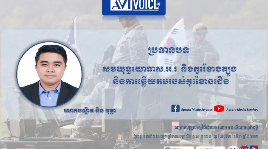 ស.រ.អ. និងសម្ព័ន្ធមិត្តរបស់ខ្លួនគឺកូរ៉េខាងត្បូងបានធ្វើសមយុទ្ធយោធាខ្នាតធំរួមគ្នាមួយ ដើម្បីពង្រឹងនិងពង្រីកបន្ថែមនូវកិច្ចសហប្រតិបត្តិការផ្នែកយោធារវាងប្រទេសទាំងពីរឱ្យកាន់តែមានភាពស៊ីជម្រៅ និងរឹងមាំ។ ស្របពេលជាមួយគ្នានេះ កូរ៉េខាងជើងក៏បានឆ្លើយតបទៅនឹងសកម្មភាពដ៏គួរឱ្យព្រួយបារម្មណ៍របស់ប្រទេសសម្ព័ន្ធមិត្តទាំងពីរនេះ ដោយការត្រៀមខ្លួនដោយអាវុធនុយក្លេអ៊ែរដែលខ្លួនមាន។ ក្នុងកិច្ចសម្ភាសន៍នេះ លោកបណ្ឌិត ធិន វុត្ថា បានពន្យល់អំពីគោលបំណងរបស់ស.រ.អ.និងកូរ៉េខាត្បូងក្នុងការធ្វើសមយុទ្ធយោធាខ្នាតធំមួយនេះ និងផលប៉ះពាល់នៃការត្រៀមខ្លួនរបស់កូរ៉េខាងជើងក្នុងការឆ្លើយតបទៅនឹងសកម្មភាពមួយនេះ។