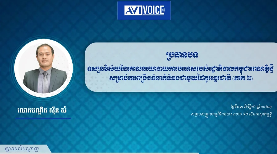 ដើម្បីផ្សព្វផ្សាយអំពីគោលជំហរឯករាជ្យនិងអព្យាក្រឹត្យរបស់កម្ពុជា រាជរដ្ឋាភិបាលនីតិកាលទី៧ គួរតែផ្តោតលើការរក្សាតុល្យភាពអំណាចរវាងមហាអំណាចចិននិងសហរដ្ឋអាមេរិក បង្កើនការចូលរួមនិងកសាងយន្តការដោះស្រាយជម្លោះជាមួយនឹងសហគមន៍អន្តរជាតិ និងចូលរួមកាន់តែសកម្មភាពបន្ថែមទៀតក្នុងកិច្ចសហប្រតិបត្តិការថែររក្សាសន្តិភាពនិងដោះស្រាយបញ្ហាសន្តិសុខមិនប្រពៃណី។ កម្ពុជាត្រូវការកសាងនយោបាយការបរទេសនិងយុទ្ធសាស្រ្តការទូតដែលមានភាពវ័យឆ្លាត ឯករាជ្យ បត់បែននិងគោរពតាមគោលការណ៍ច្បាប់អន្តរជាតិ។ កម្ពុជាប្រឆាំងដាច់ខាតរាល់ការវាយប្រហារ ឬអំពើហឹង្សាណាមួយដែលរំលោភលើអធិបតេយ្យភាពប្រទេសណាមួយ ឬប៉ះពាល់ដល់អាយុជីវិតប្រជាជន ជាអាទិ៍ នៅក្នុងបញ្ហាសង្រ្គាមនៅអ៊ុយក្រែន កម្ពុជាគឺជាប្រទេសដែលសកម្ម និងជាសហស្ថាបនិកសេចក្តីថ្លែងការណ៍ថ្កោលទោសការវាយប្រហាររបស់រុស្សី និងអំពាវនាវអោយមានបទឈប់បាញ់និងការចរចារដោយសន្តិភាព។