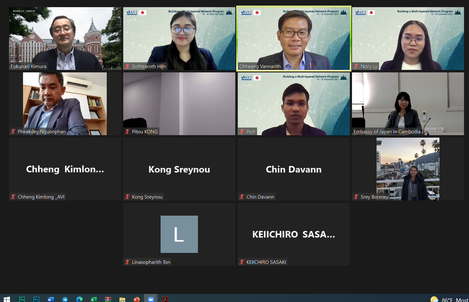 [English Below] កាលពីថ្ងៃទី១៣ ខែធ្នូ ឆ្នាំ២០២១ បណ្ឌិត ឈាង វណ្ណារិទ្ធ ប្រធានវិទ្យាស្ថានចក្ខុវិស័យអាស៊ី បានចូលជួបសម្តែងការគួរសមជាមួយ ឯកឧត្តម MIYAKE Shingo អនុរដ្ឋមន្រ្តីការបរទេសជប៉ុន តាមប្រព័ន្ធ Webex Cisco។ ជំនួបនេះត្រូវបានរៀបចំឡើងដោយស្ថានទូតជប៉ុនប្រចាំព្រះរាជាណាចក្រកម្ពុជា ក្រោម «កម្មវិធីកសាងបណ្ដាញទំនាក់ទំនងរវាងអ្នកជំនាញជប៉ុន និងអ្នកជំនាញ និងអ្នកសិក្សាស្រាវជ្រាវនៃវិទ្យាស្ថានចក្ខុវិស័យអាស៊ី» ដោយមានការសម្របសម្រួលយ៉ាងកក់ក្ដៅពីលោក SASAKI Keiichiro លេខាធិការទី២នៃស្ថានទូតជប៉ុននៅកម្ពុជា និងមានការចូលរួមពីបណ្ឌិត កែវ ពិសិដ្ឋ និងបណ្ឌិត ឆេង គីមឡុង អនុប្រធានវិទ្យាស្ថានចក្ខុវិស័យអាស៊ី ក៏ដូចជាប្រធាន និងអនុប្រធានមជ្ឈមណ្ឌលវិទ្យាស្ថាន ព្រមទាំសហការីអ្នកសិក្សាស្រាវជ្រាវរបស់វិទ្យាស្ថានជាច្រើនរូបទៀត។ On 13th December 2021, Dr. CHHEANG Vannarith, President of Asian Vision Institute (AVI), paid a courtesy call on H.E....