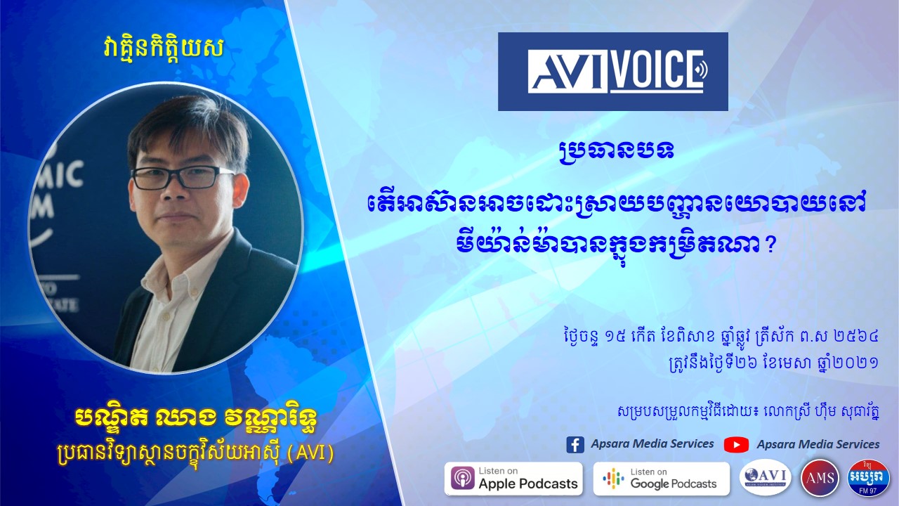 កម្មវិធី AVI VOICE ៖ តើអាស៊ានអាចដោះស្រាយបញ្ហានយោបាយនៅមីយ៉ាន់ម៉ាបានក្នុងកម្រិតណា?