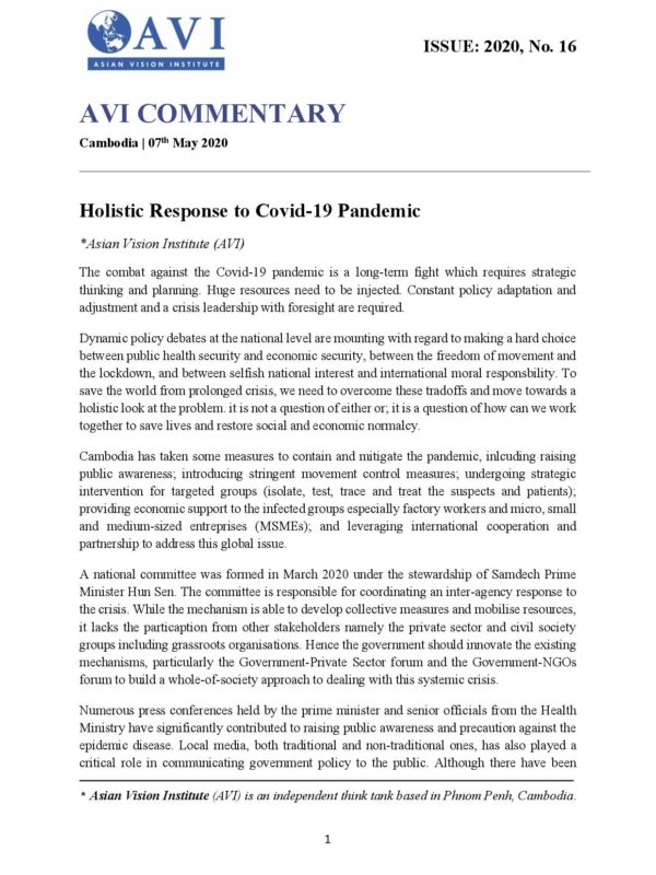 AVI proposes the following economic policy proposals for Cambodia.