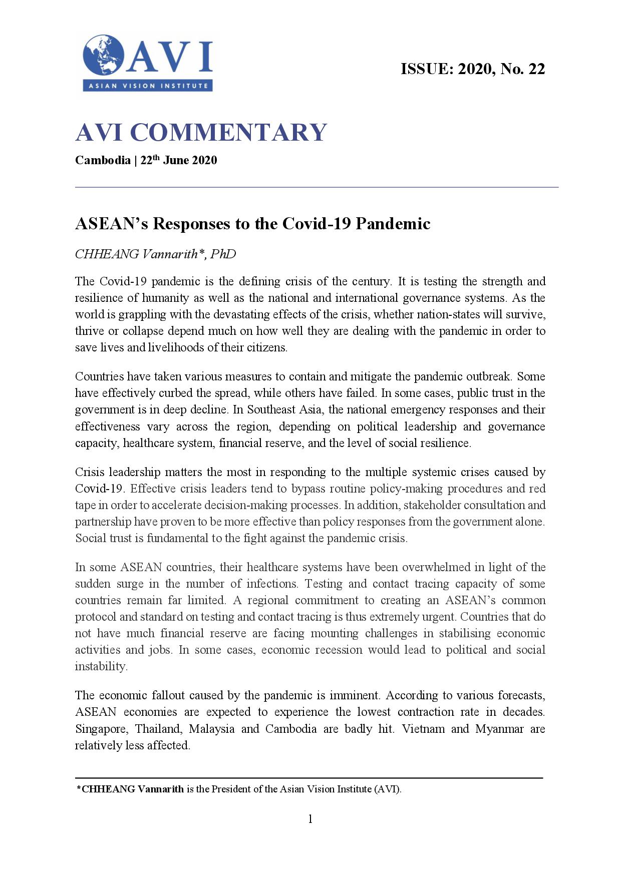 AVI COMMENTARY ISSUE: 2020, No. 22
