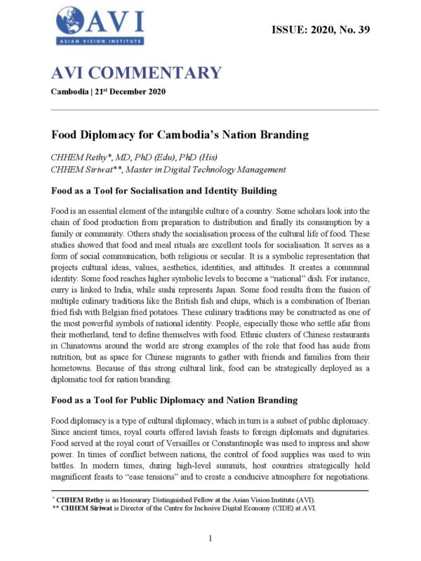 AVI COMMENTARY ISSUE: 2020, No. 39 | Food Diplomacy for Cambodia’s Nation Branding