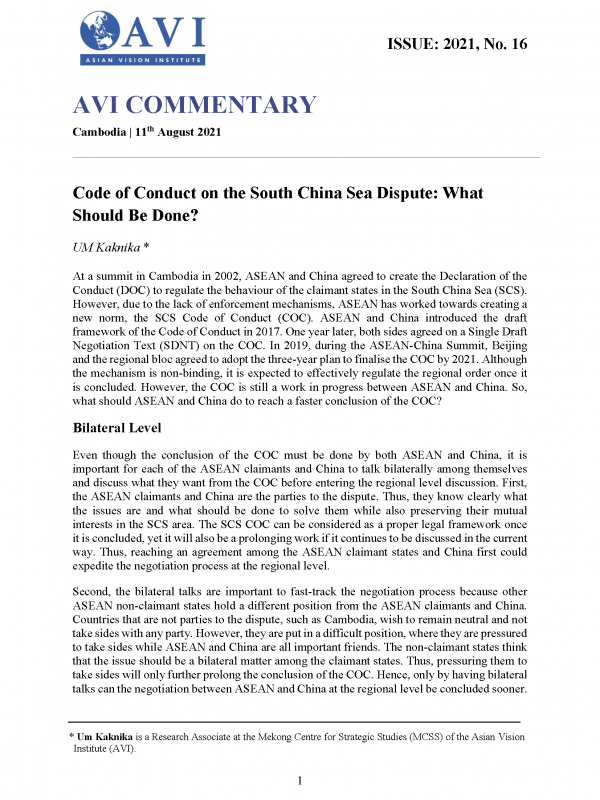 The views expressed are the author’s own and do not reflect the views of the Asian Vision Institute.