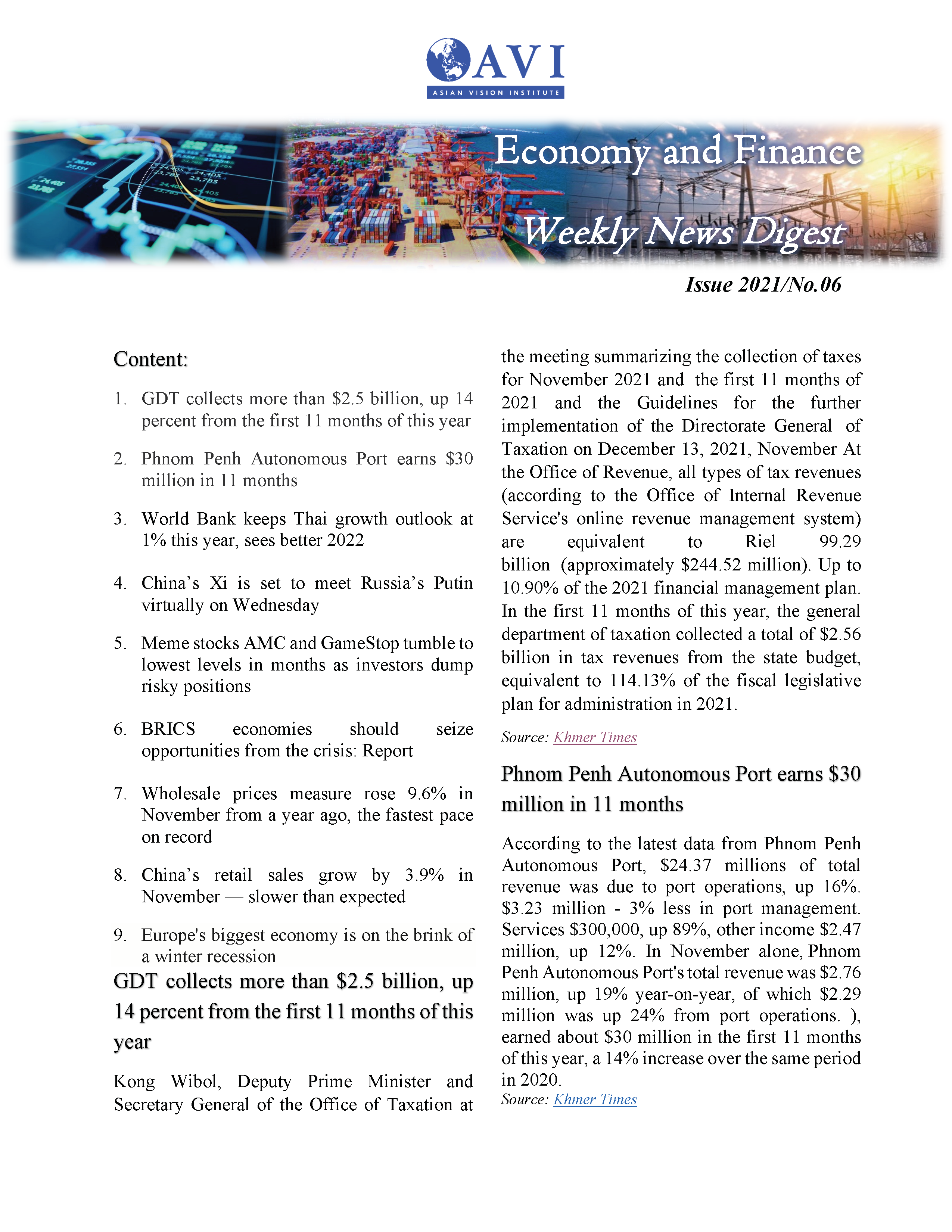 AVI ECONOMY AND FINANCE WEEKLY NEWS DIGEST