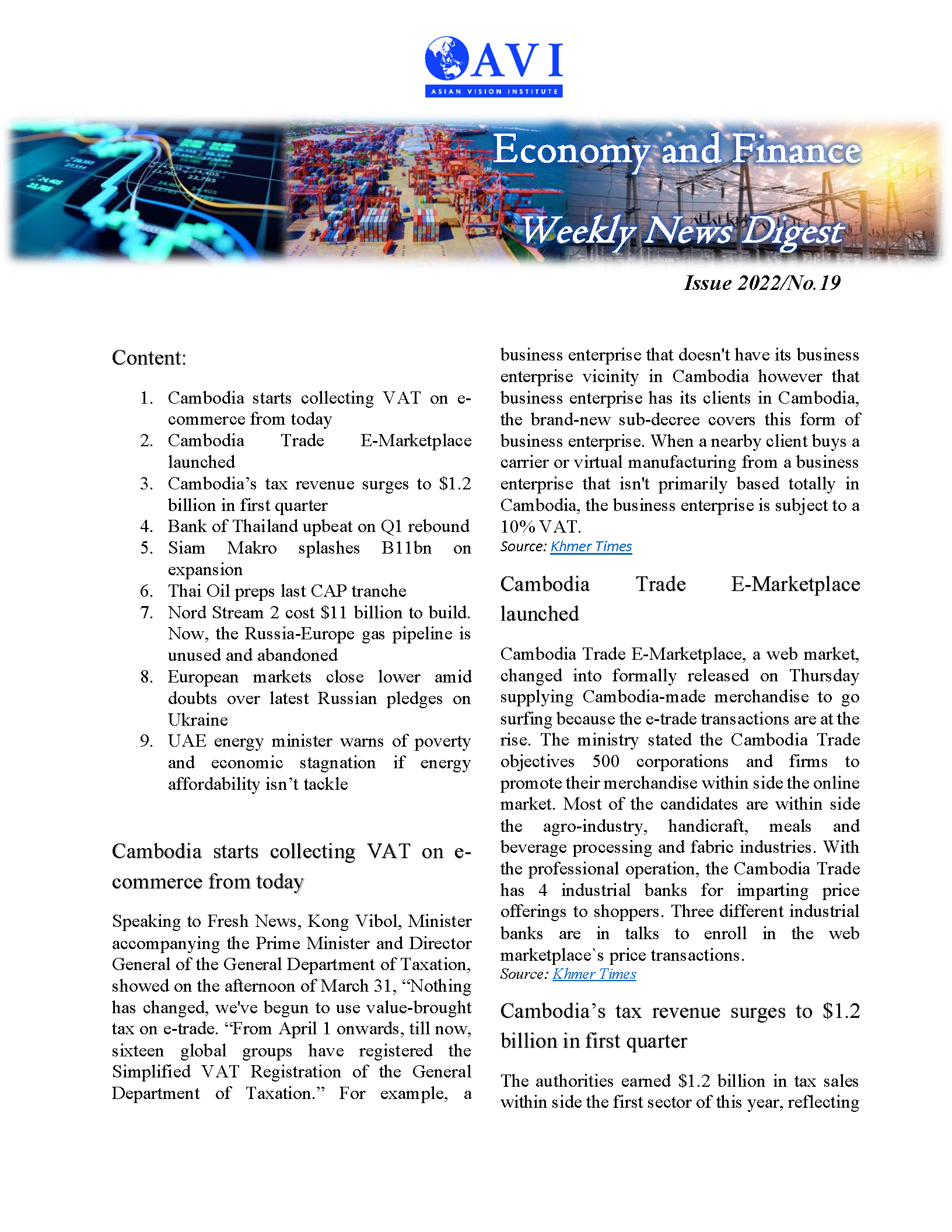 AVI ECONOMY AND FINANCE WEEKLY NEWS DIGEST