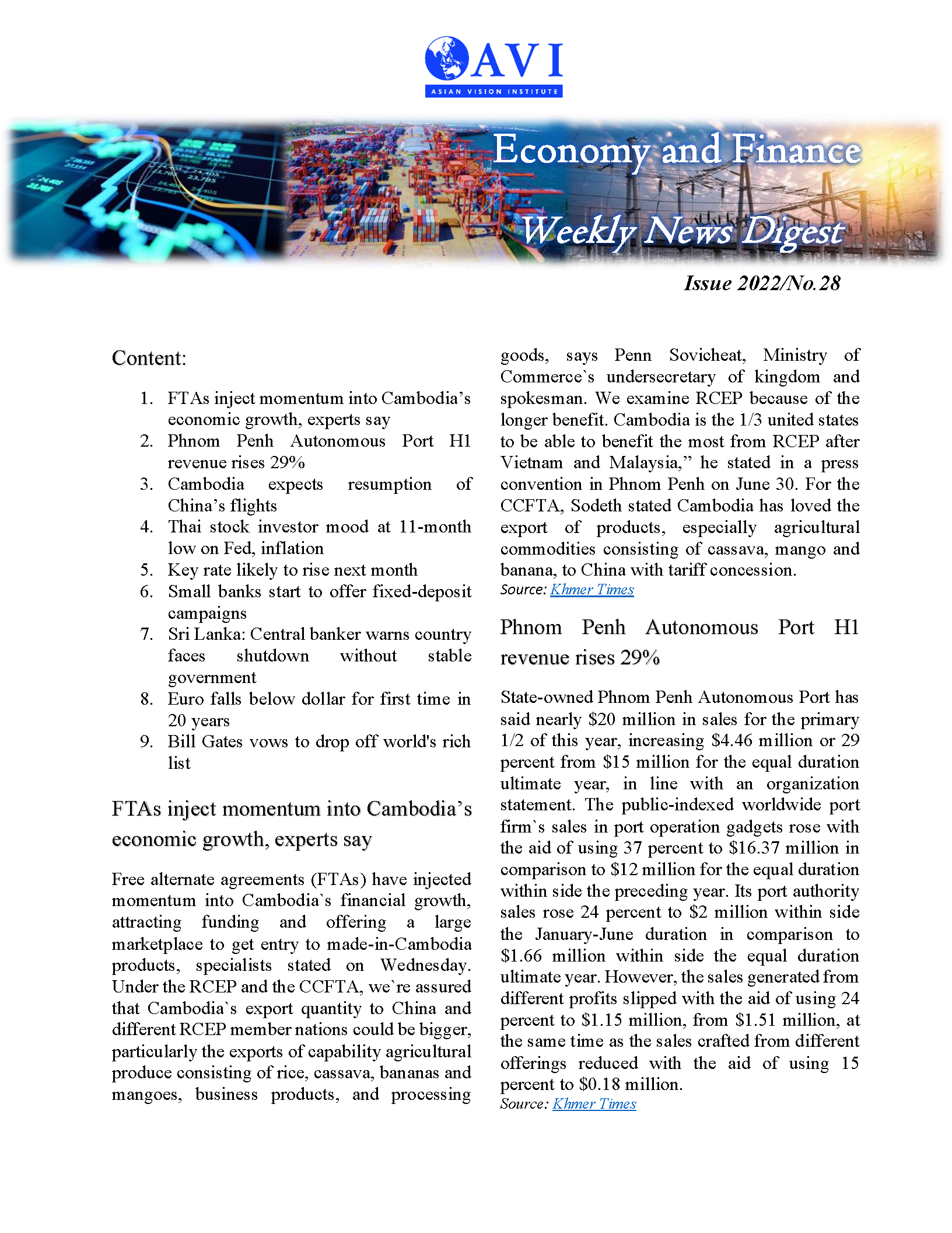 AVI ECONOMY AND FINANCE WEEKLY NEWS DIGEST