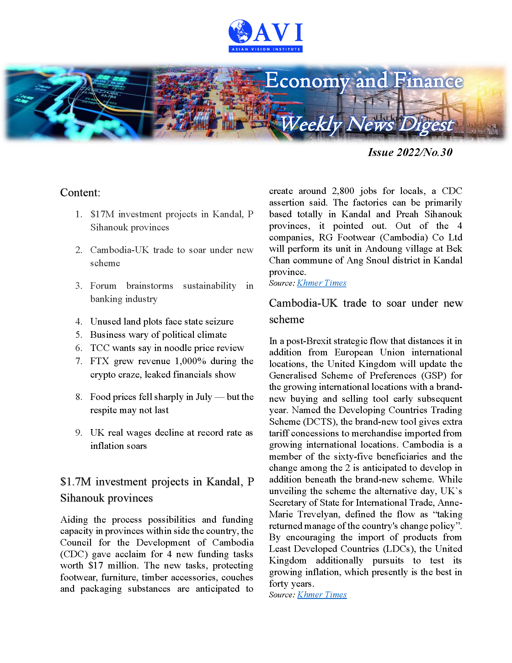 1. $17M investment projects in Kandal, P Sihanouk provinces