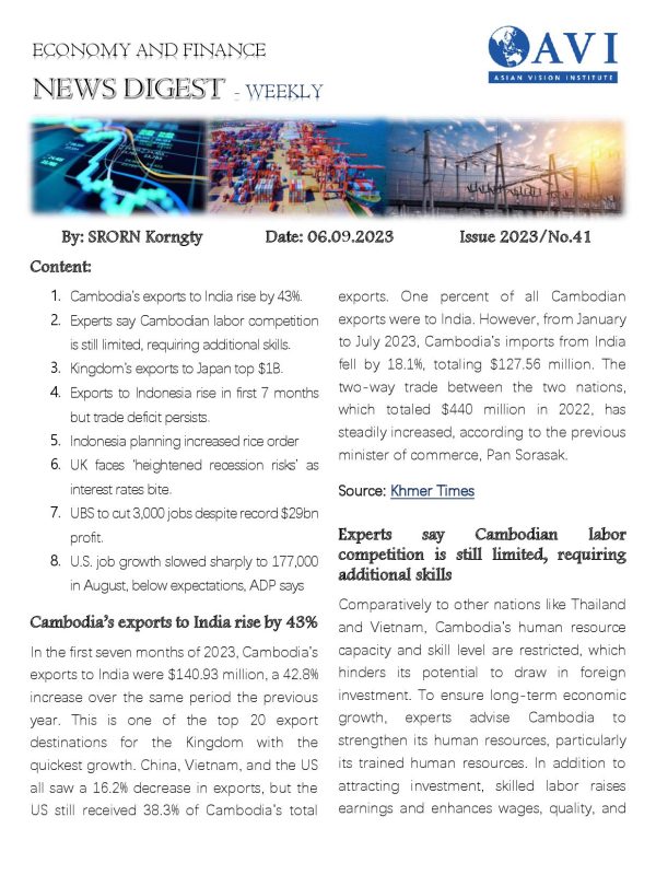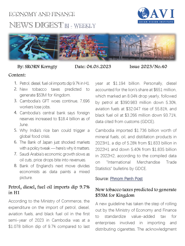 In May 2023, AVI hosted two Think Tank 2022 Public Lecture Series and the AVI-SDGs Dialogue. It also co-hosted the 5th AAWC Board Meeting and a high-level roundtable discussion under the theme “Asia Action Agenda for Climate Resilience Through Water”. Besides, AVI’s senior researchers shared views on various issues such as RCEP and ASEAN Economic Community and ASEAN-Japan Cooperation. The institute also published a commentary article on Cambodia’s Economic Diplomacy Strategy 2021–2023: a Positive Deliberation for 2025 and contributed a book chapter on “Track Two Diplomacy and ASEAN Community Building”.