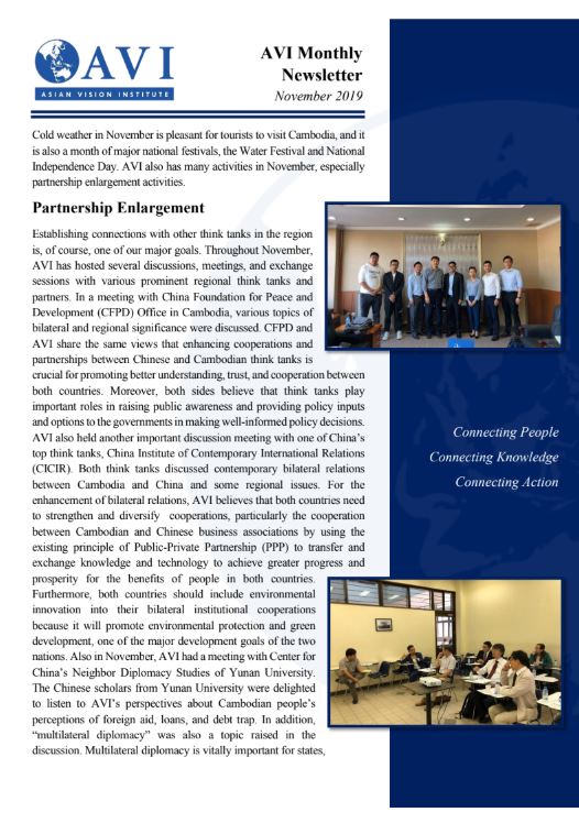 Cold weather in November is pleasant for tourists to visit Cambodia, and it is also a month of major national festivals, the Water Festival and National Independence Day. AVI also has many activities in November, especially partnership enlargement activities.