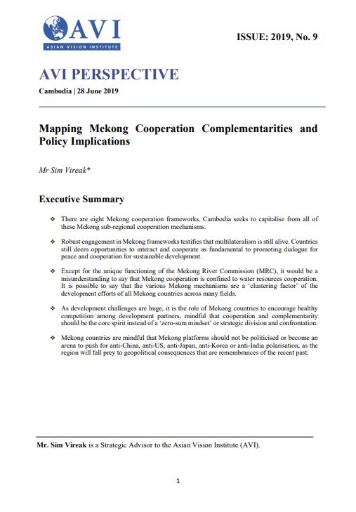 • There are eight Mekong cooperation frameworks. Cambodia seeks to capitalise from all of these Mekong sub-regional cooperation mechanisms.