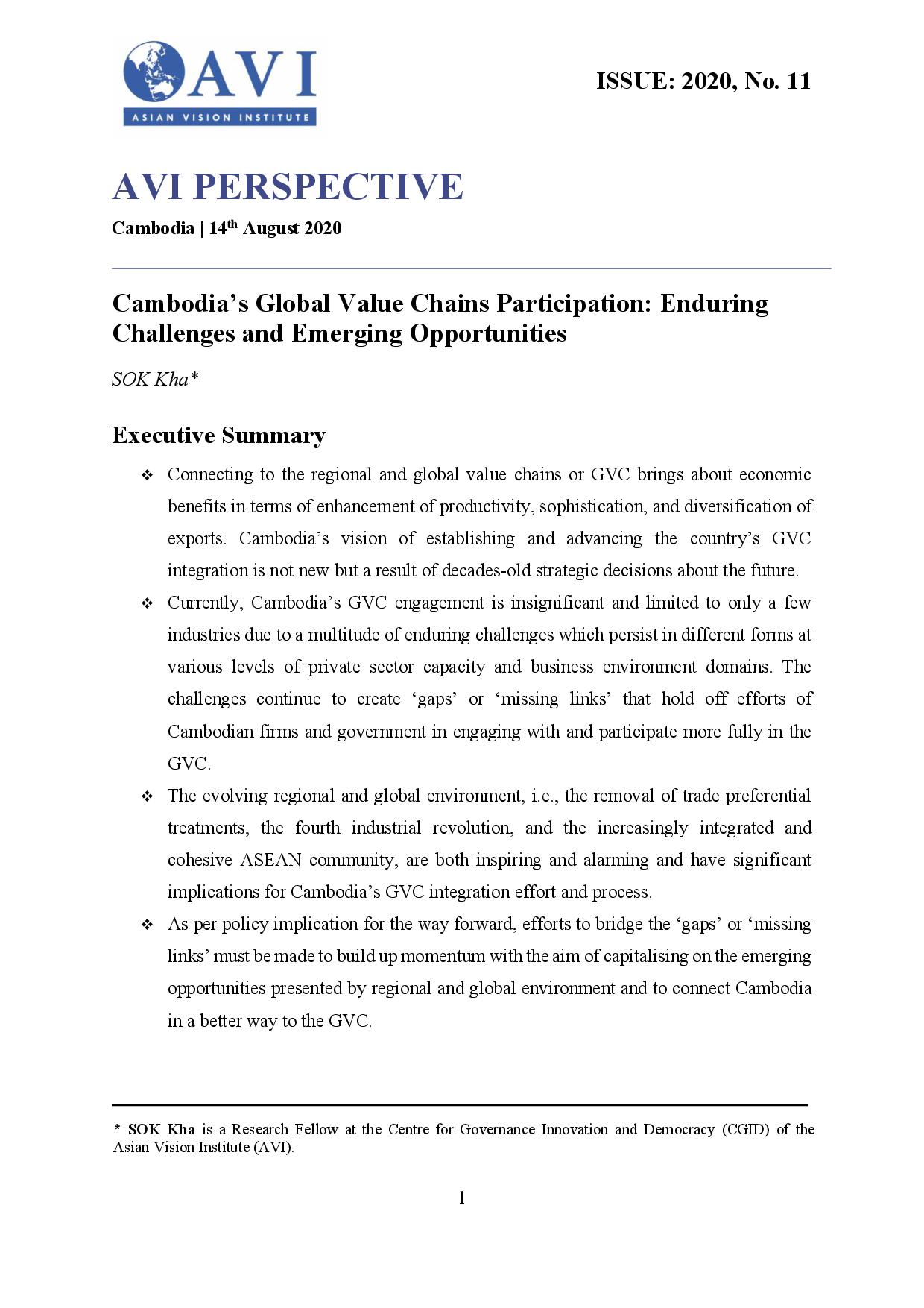 Cambodia’s Global Value Chains Participation: Enduring Challenges and Emerging Opportunities