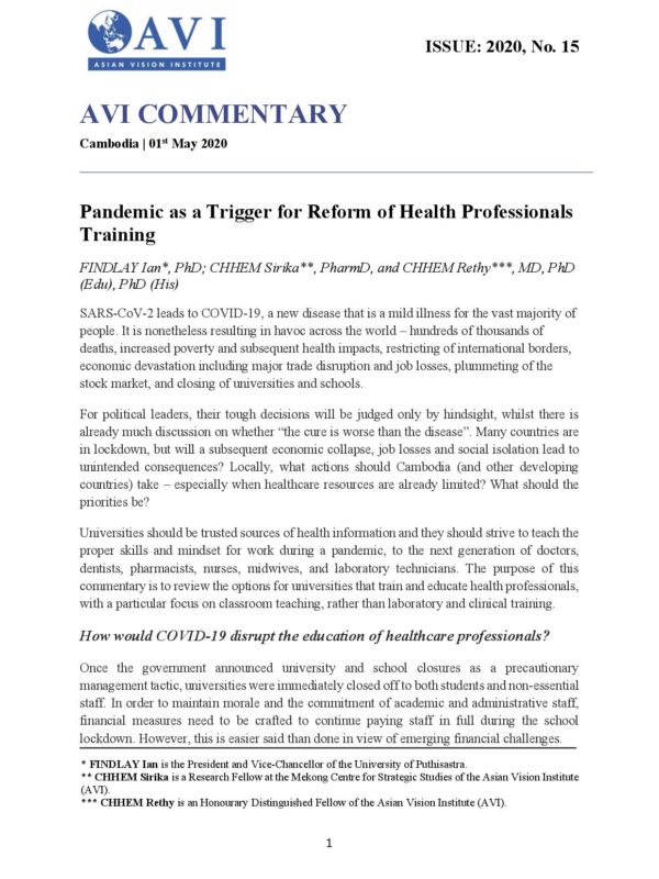 AVI COMMENTARY ISSUE: 2020, No. 15 | Pandemic as a Trigger for Reform of Health Professionals Training