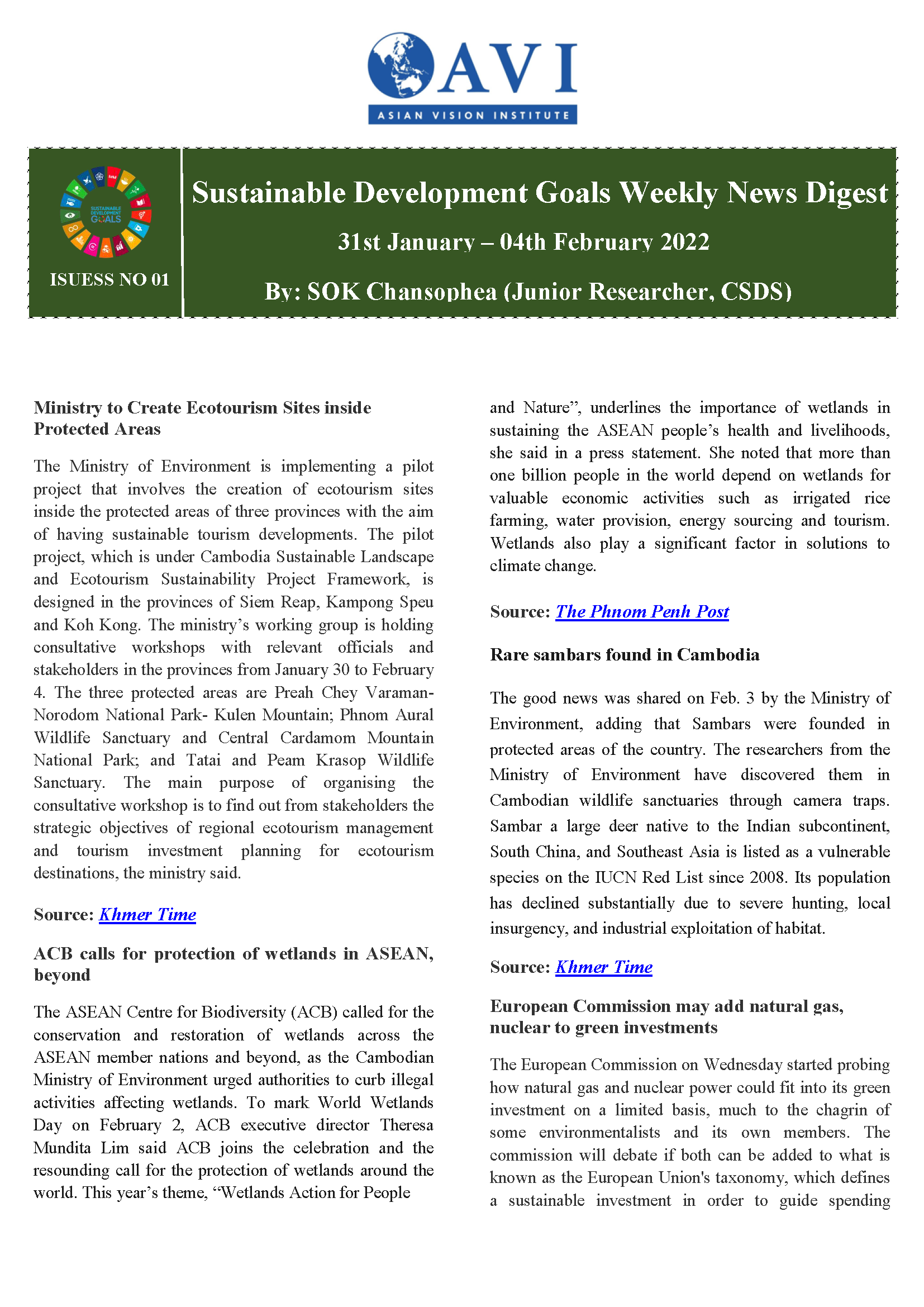AVI SUSTAINABLE DEVELOPMENT GOALS WEEKLY NEWS DIGEST
