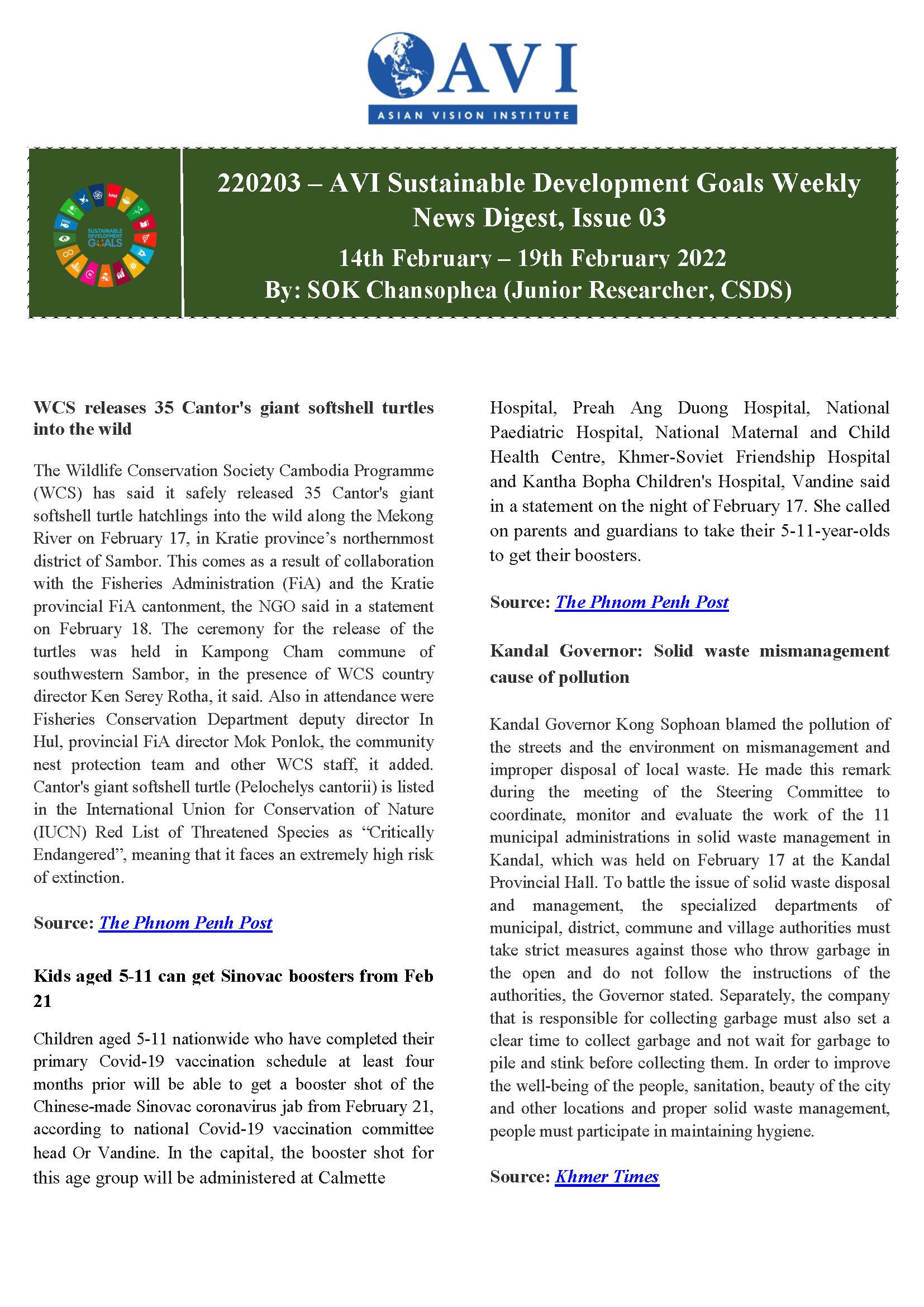 AVI SUSTAINABLE DEVELOPMENT GOALS WEEKLY NEWS DIGEST