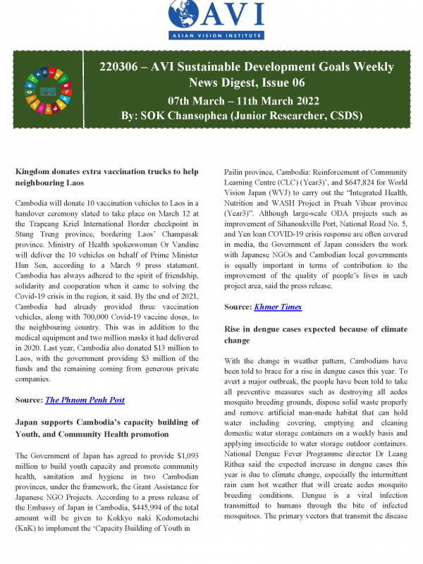 AVI SUSTAINABLE DEVELOPMENT GOALS WEEKLY NEWS DIGEST, ISSUE: 2022, No. 06