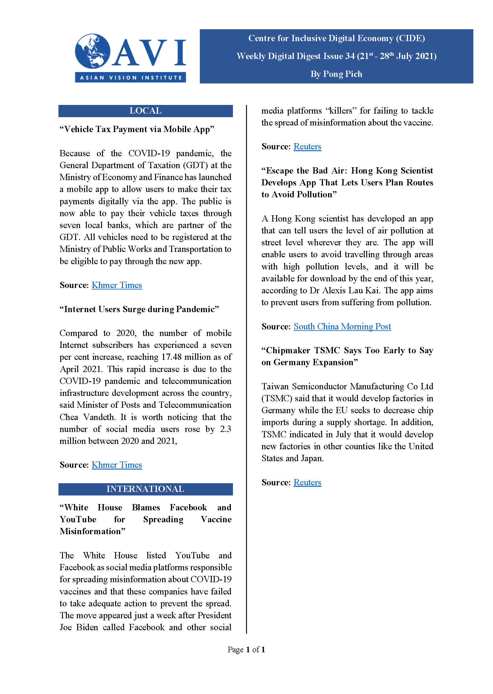 AVI WEEKLY NEWS BRIEFING – CIDE , ISSUE: 2021, No. 34
