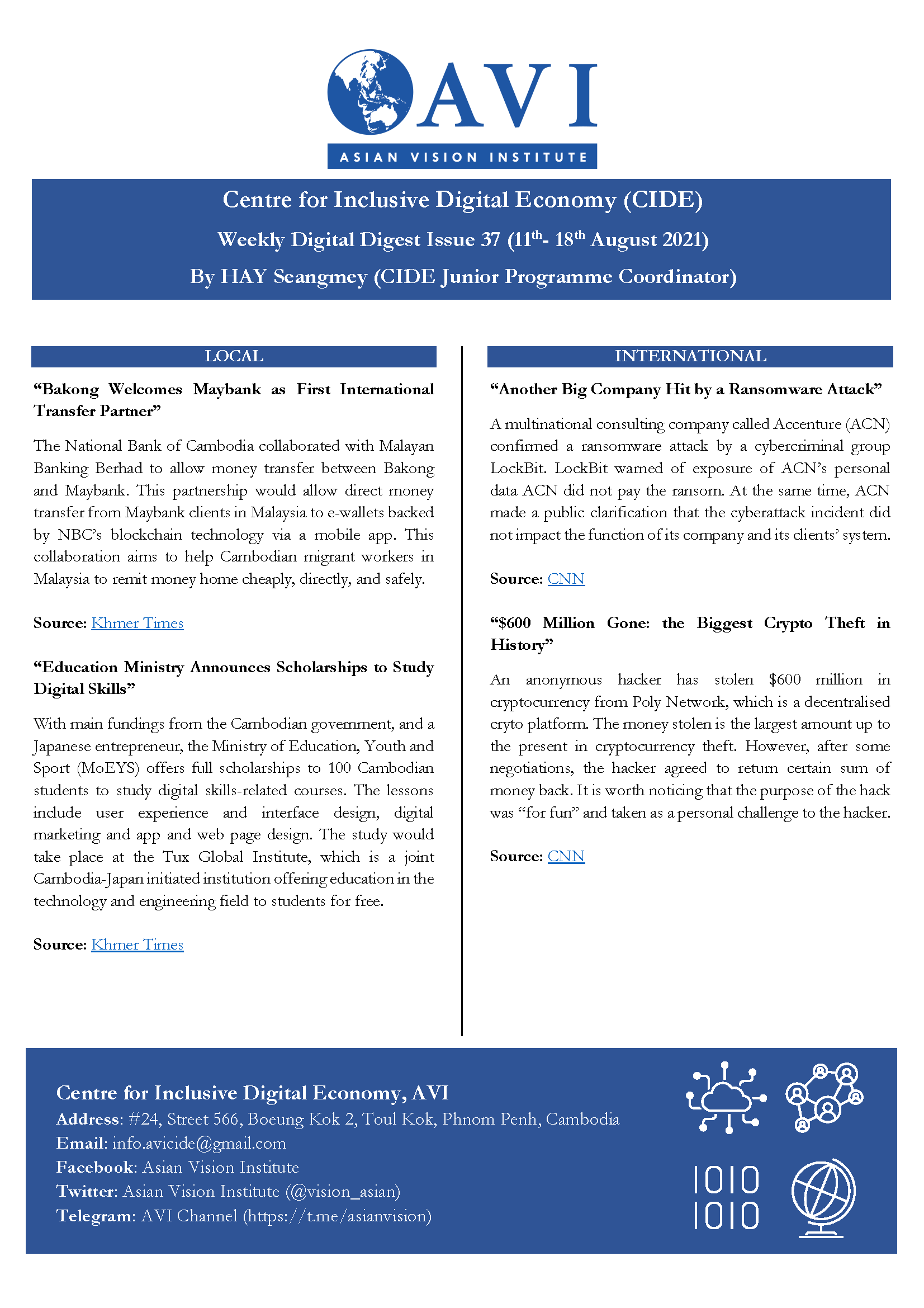 AVI WEEKLY NEWS BRIEFING - CIDE