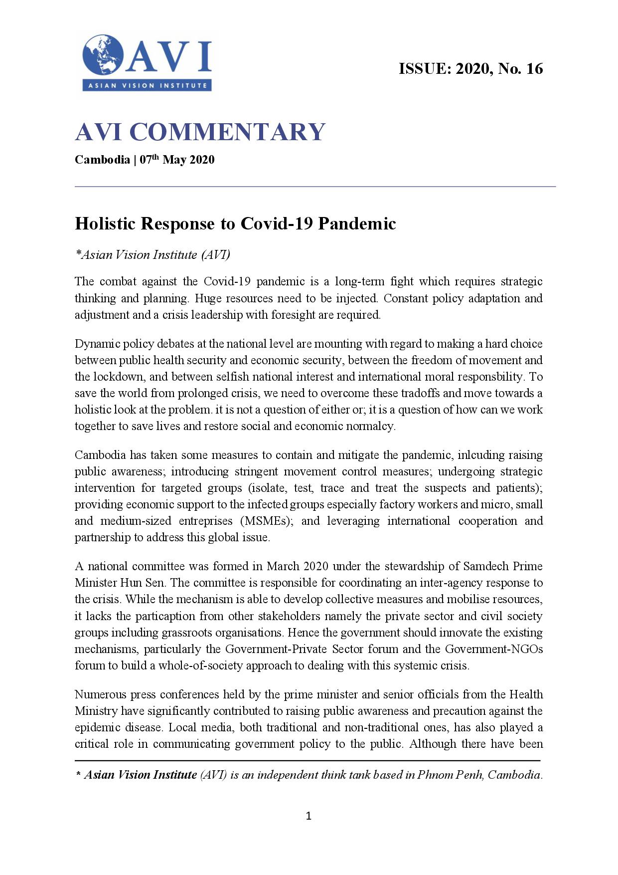 AVI COMMENTARY ISSUE: 2020, No. 16 | Holistic Response to Covid-19 Pandemic