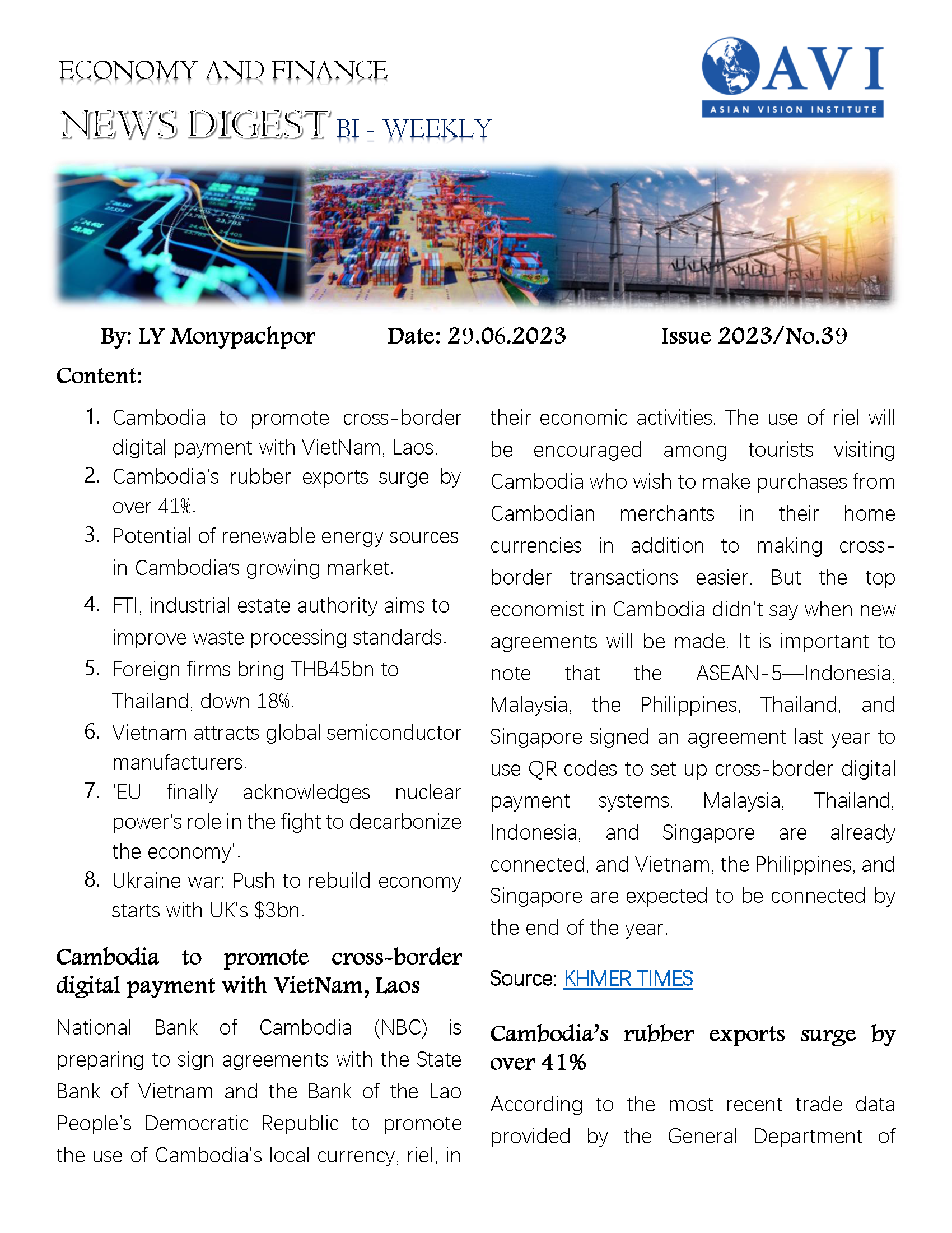 AVI ECONOMY AND FINANCE WEEKLY NEWS DIGEST, ISSUE: 2023, No. 39
