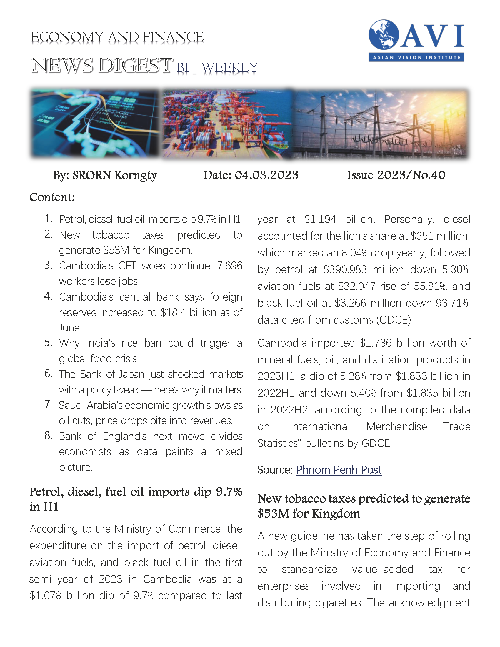 AVI ECONOMY AND FINANCE WEEKLY NEWS DIGEST, ISSUE: 2023, No. 40