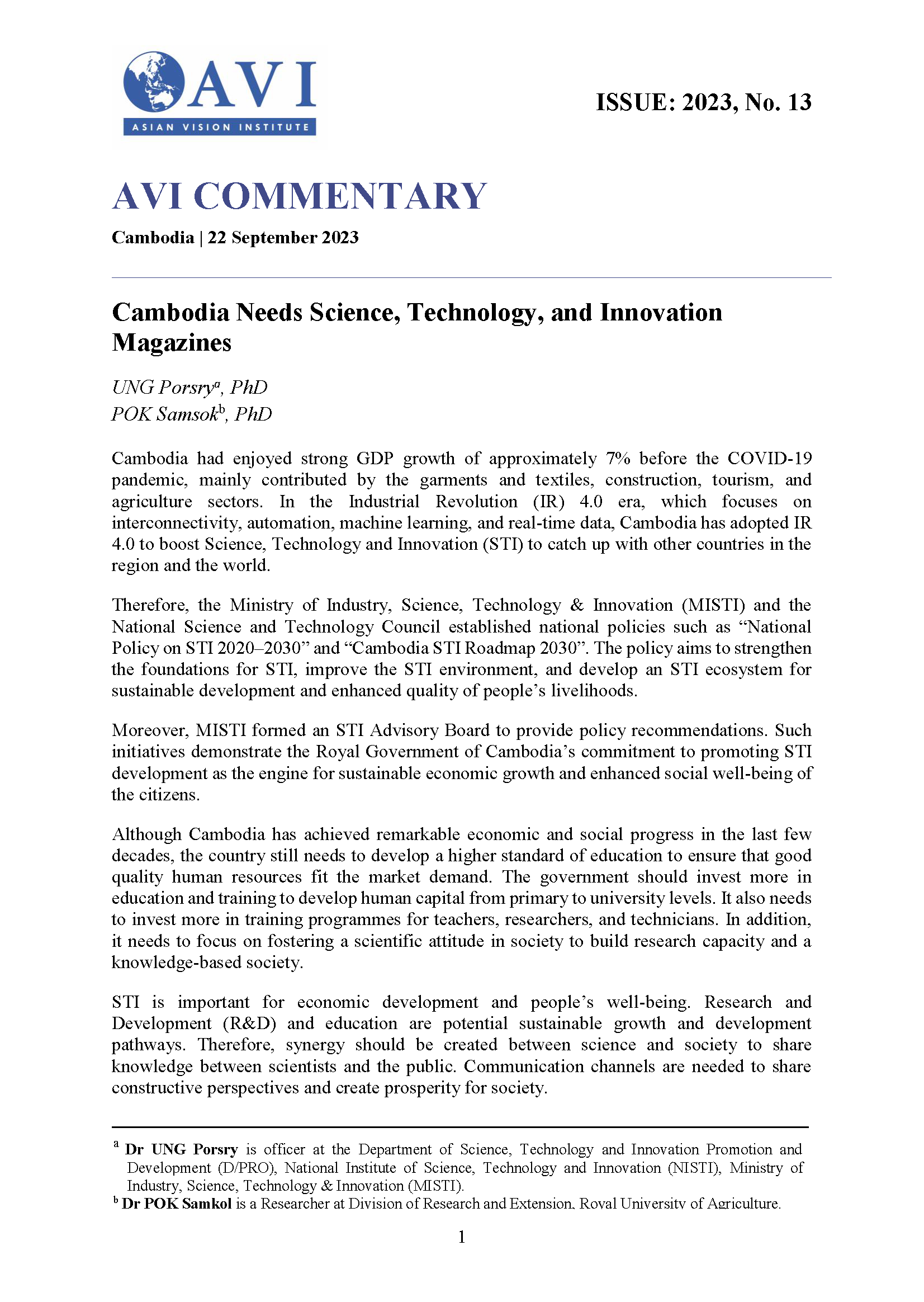 AVI COMMENTARY ISSUE: 2024, No. 12 | Prospect of Nuclear Technology in Cambodia