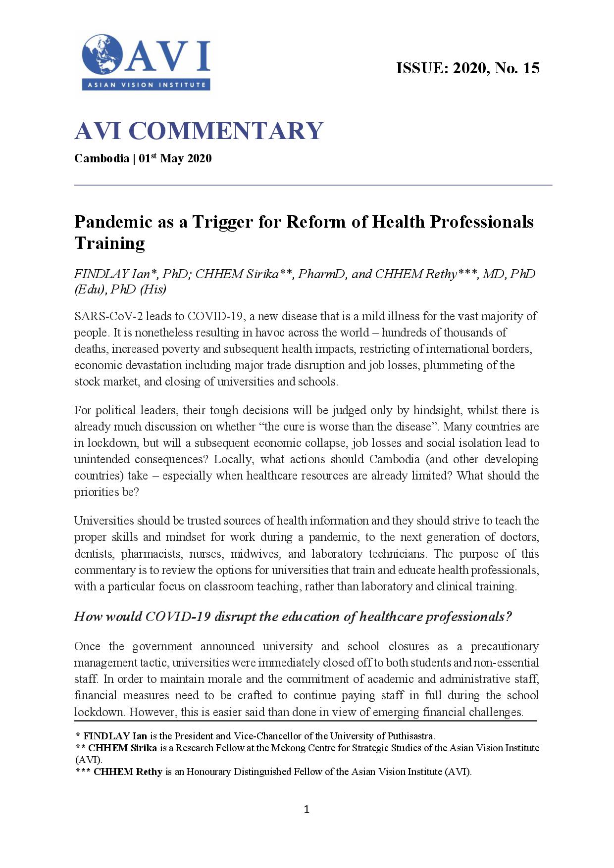 AVI COMMENTARY ISSUE: 2020, No. 15 | Pandemic as a Trigger for Reform of Health Professionals Training