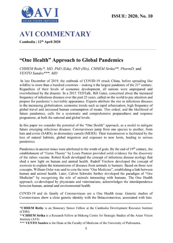 AVI COMMENTARY ISSUE: 2020, No. 10 | “One Health” Approach to Global Pandemics