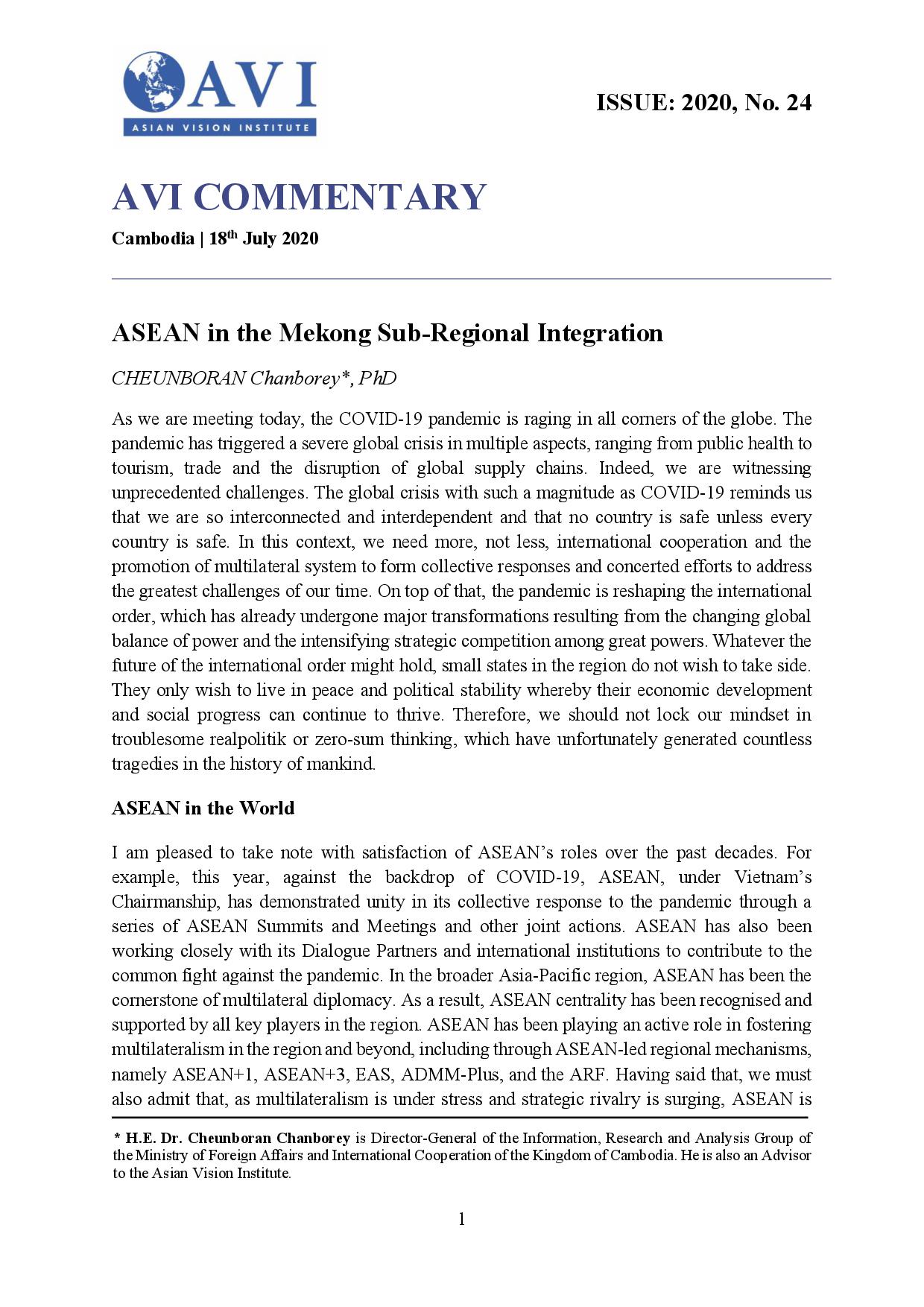 AVI COMMENTARY ISSUE: 2020, No. 37 | China’s Security Presence in the Mekong: A Cambodian Perspective
