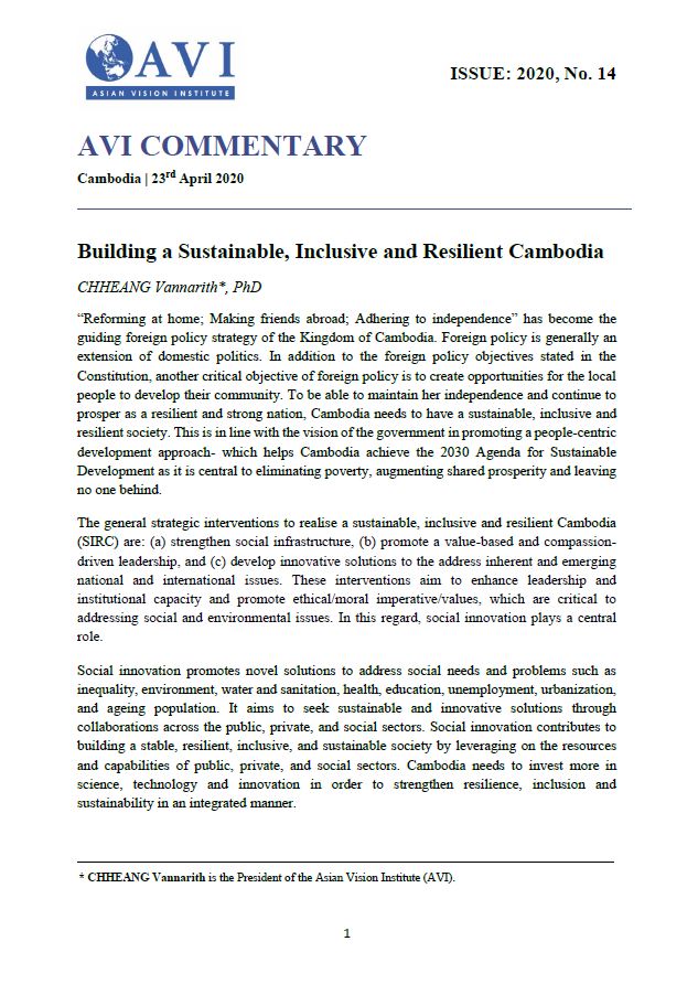 AVI COMMENTARY ISSUE: 2020, No. 14 | Building a Sustainable, Inclusive and Resilient Cambodia