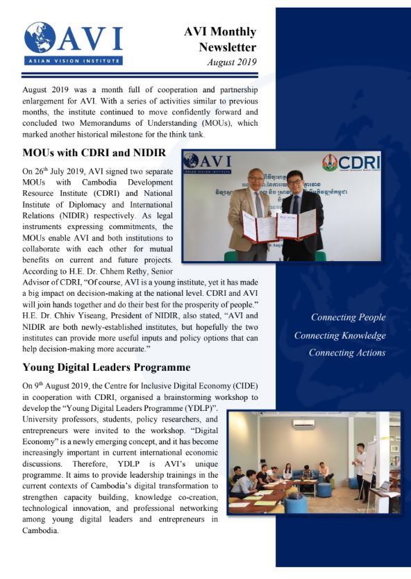 AVI និង AWC ចុះអនុស្សរណៈដើម្បីពង្រឹងកិច្ចសហប្រតិបត្តិការលើវិស័យទឹក/AVI and AWC Sign MoA to Strengthen Water Cooperation