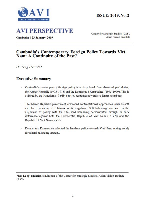 AVI PERSPECTIVE ISSUE: 2019, No. 2 | Cambodia’s Contemporary Foreign Policy Towards Viet Nam: A Continuity of the Past?
