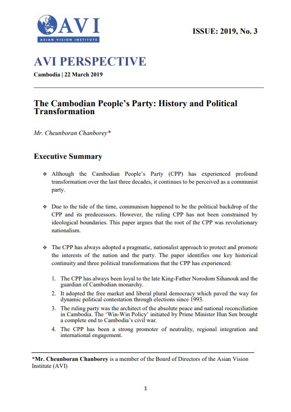 AVI PERSPECTIVE ISSUE: 2019, No. 3 | The Cambodian People’s Party: History and Political Transformation