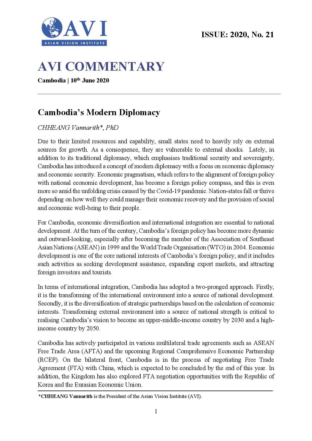 AVI COMMENTARY ISSUE: 2020, No. 14 | Building a Sustainable, Inclusive and Resilient Cambodia