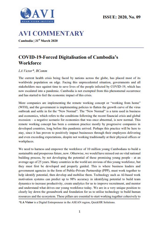 AVI COMMENTARY ISSUE: 2020, No. 09 | COVID-19-Forced Digitalisation of Cambodia’s Workforce