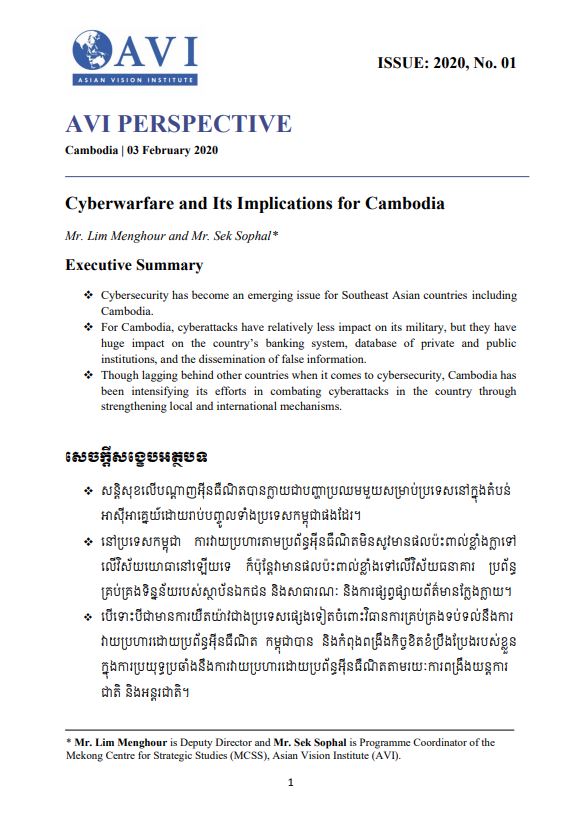AVI PERSPECTIVE ISSUE: 2020, No. 01 | Cyberwarfare and Its Implications for Cambodia