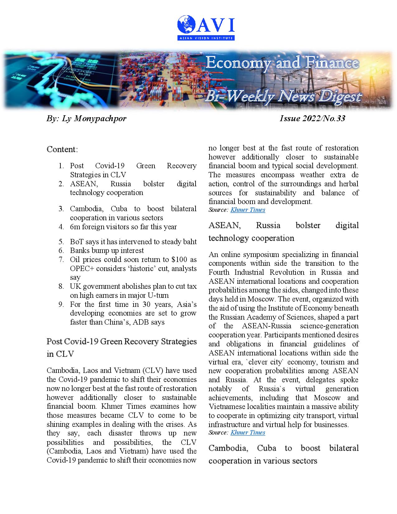 AVI ECONOMY AND FINANCE WEEKLY NEWS DIGEST, ISSUE: 2022, No. 33