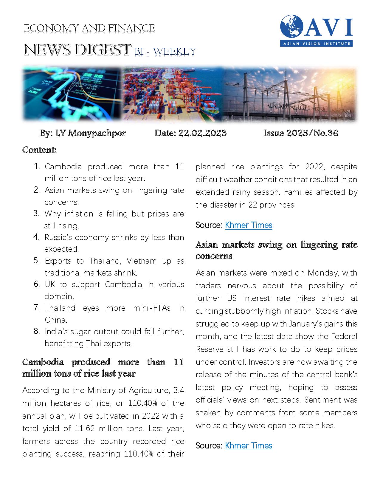 AVI ECONOMY AND FINANCE WEEKLY NEWS DIGEST, ISSUE: 2023, No. 36